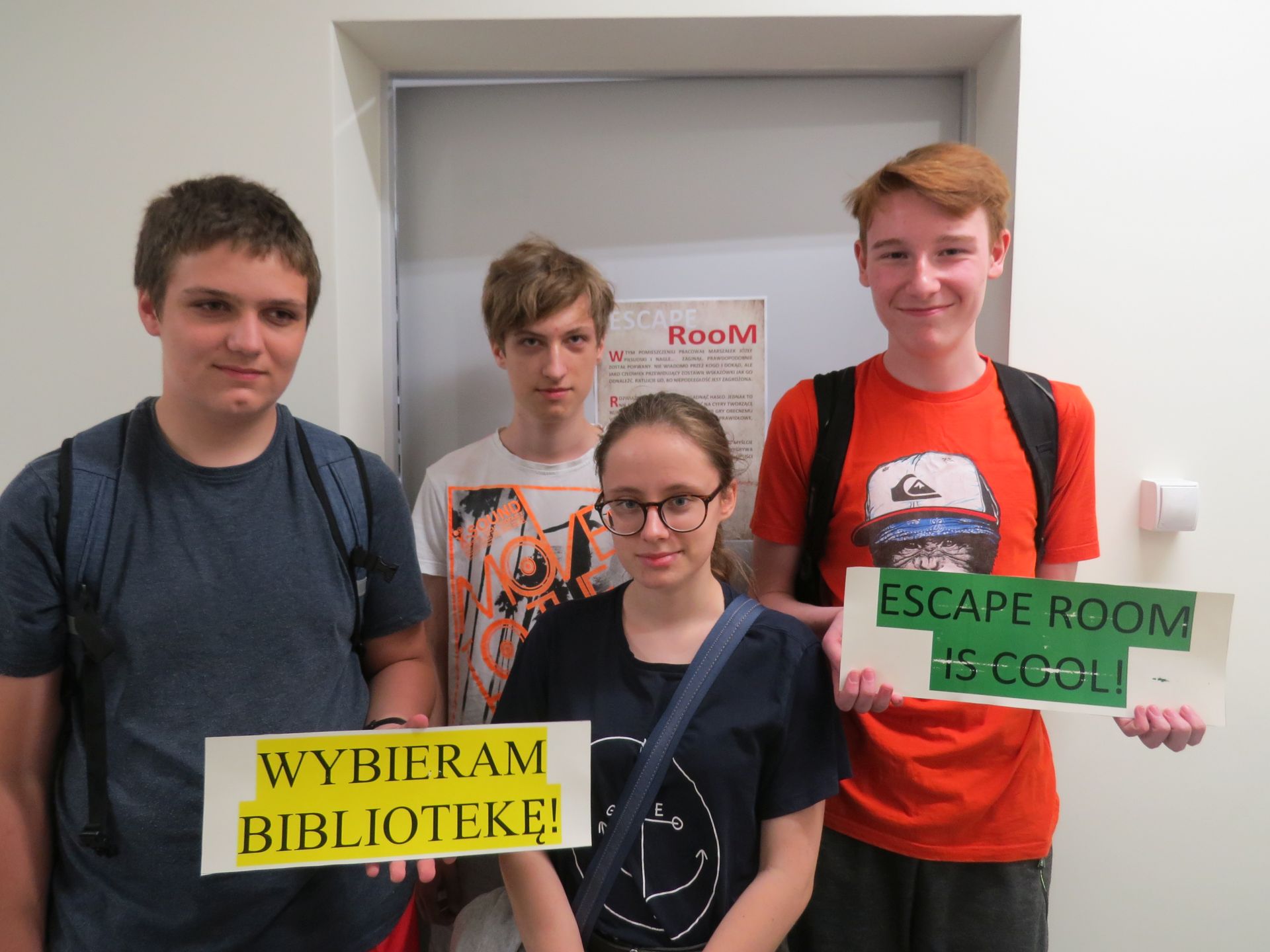 7 czerwca br. w ramach obchodów Dni Wąbrzeźna biblioteka przygotowała, święcącą tryumfy na całym świecie, grę o nazwie „Escape room”. Zabawa ta ma swoje korzenie w świecie gier wirtualnych, które polegały na tym, by rozwiązać zagadki i uciec z zamkniętego pomieszczenia. W krótkim czasie gra przeniosła się z komputera do realnego świata i dziś grają w nią wszyscy. Swoich sił mogli też spróbować młodzi wąbrzeźnianie, po raz pierwszy w naszym mieście! Do gry przystąpiło sześć czteroosobowych drużyn. W magazynie bibliotecznym czekał na nich pokój stylizowany na gabinet Marszałka Piłsudskiego. Scenariusz zabawy zakładał, że Marszałek został porwany przez nieznanych sprawców, ale jako wybitny mąż stanu przewidział kilka ruchów naprzód swoich przeciwników i zostawił zakamuflowane wskazówki, które mogły naprowadzić graczy na jego trop. Tematyka została wybrana nie przypadkowo, chciałyśmy w ten sposób zaakcentować obchody 100-lecia odzyskania przez Polskę Niepodległości.