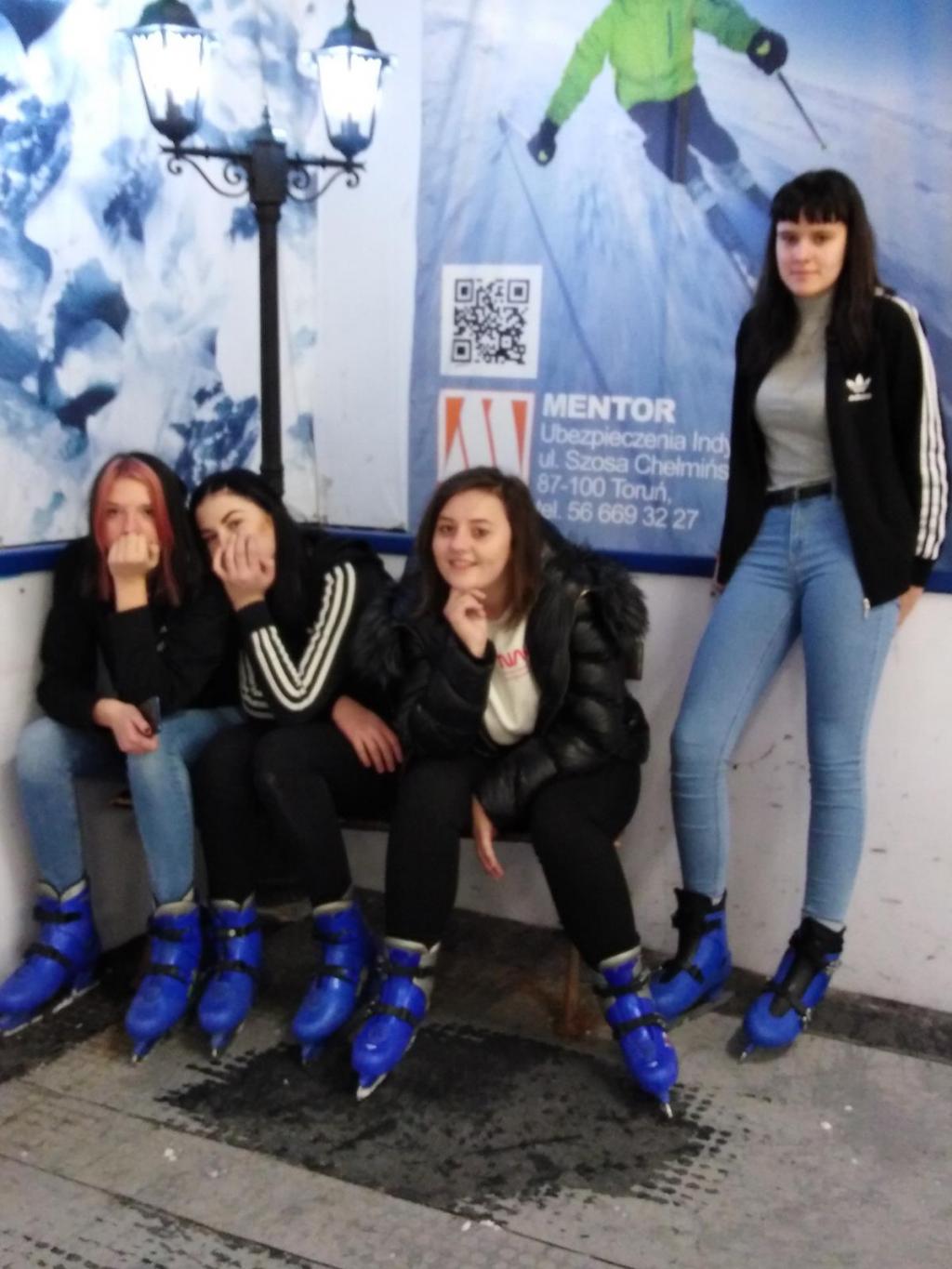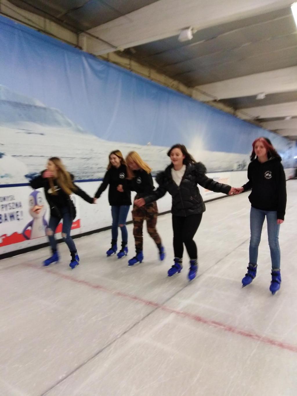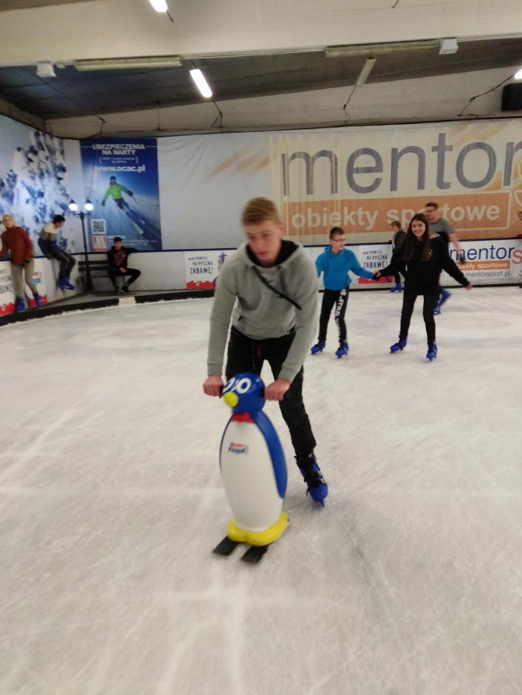 Dla tych mniej "wtajemniczonych" w sztukę poruszania się na łyżwach pomocą służyły specjalnie pingwiny. Jednak najlepszym „wsparciem” był dobrze ślizgający się kolega lub koleżanka. Mimo bolących kolan i kostek nasz wyjazd był udany, o czym świadczyły uśmiechnięte i zadowolone twarze. Młodzież mogła wzmocnić swoją sprawność fizyczną i aktywnie spędzić czas. Zadowoleni i zrelaksowani bezpiecznie wróciliśmy do domu.