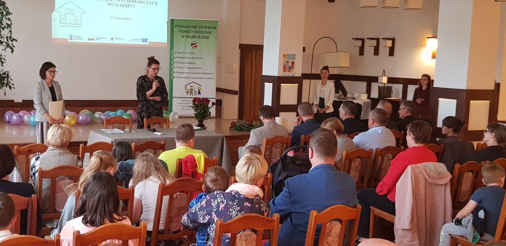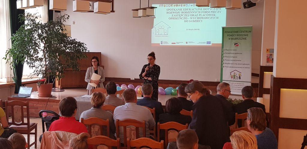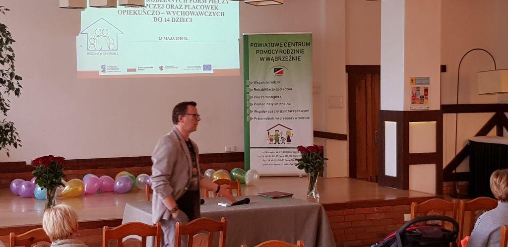W dniu 23 maja 2019 r. w Wąbrzeskim Domu Kultury odbyły się obchody Dnia Rodzicielstwa Zastępczego 2019, które połączone były ze spotkaniem dotyczącym rozwoju rodzinnych form pieczy zastępczej oraz placówek opiekuńczo-wychowawczych do 14 dzieci zorganizowanym w ramach realizowanego przez Powiatowe Centrum Pomocy Rodzinie w Wąbrzeźnie projektu pn. „Rodzina w Centrum 2”, współfinansowanego ze środków Unii Europejskiej w ramach Europejskiego Funduszu Społecznego w ramach Programu Operacyjnego Województwa Kujawsko-Pomorskiego na lata 2014-2020, Oś Priorytetowa 9 Solidarne społeczeństwo, Działanie 9.3 Rozwój usług zdrowotnych i społecznych, Poddziałanie 9.3.2 Rozwój usług społecznych.
