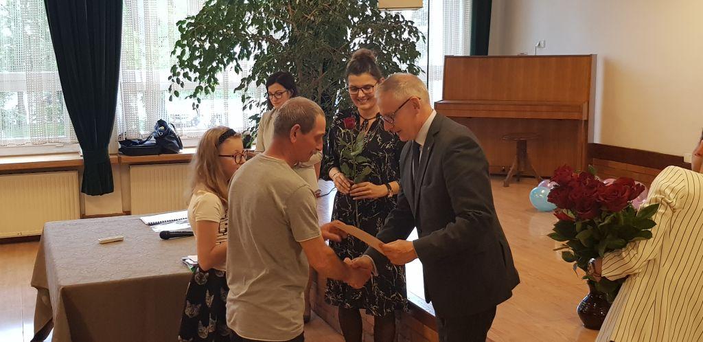W dniu obchodów święta rodzicielstwa zastępczego towarzyszyli rodzinom również zaproszeni goście Starosta Wąbrzeski Pan Krzysztof Maćkiewicz, Wicestarosta Pan Karol Sarnecki, Sekretarz Powiatu Józef Krawczyk, Przewodniczący Komisji Oświaty, Kultury, Zdrowia i Opieki Społecznej Pan Mirosław Kamiński oraz pracownik Regionalnego Ośrodka Polityki Społecznej w Toruniu, opiekun realizowanego przez tut. Centrum projektu „RWC 2” Pani Małgorzata Stasiak.