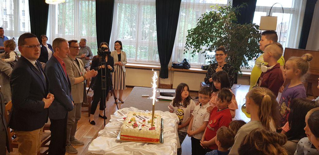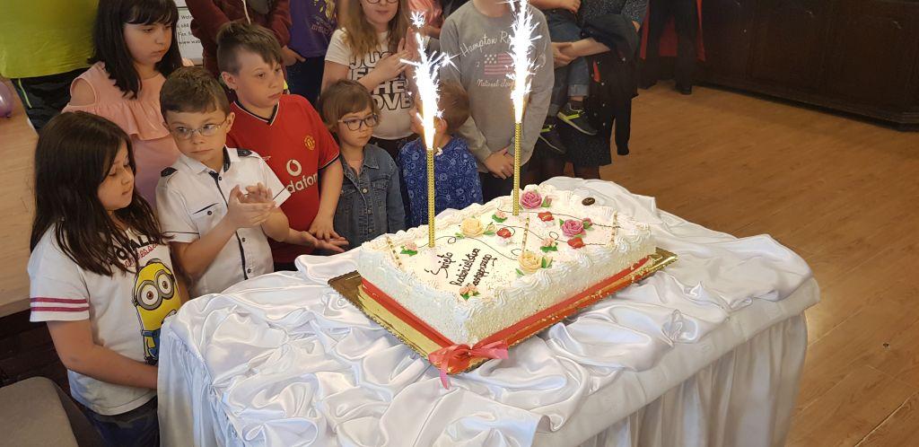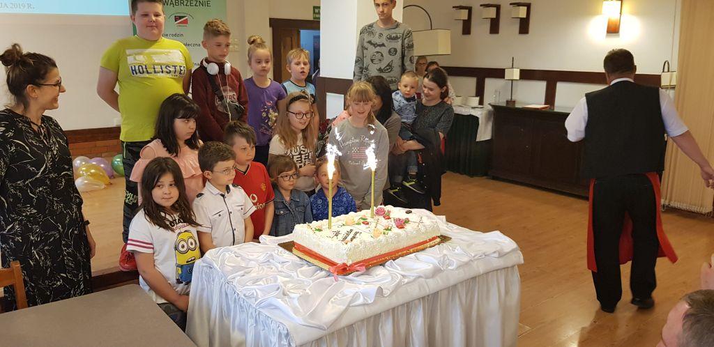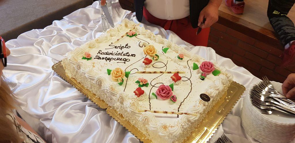 W części oficjalnej spotkania przybyłe rodziny zastępcze otrzymały Podziękowania oraz kwiaty, jako wyraz wdzięczności za ich codzienną pracę na rzecz swoich podopiecznych. Punktem kulminacyjnym spotkania był tort ufundowany przez Powiatowe Centrum Pomoczy Rodzinie w Wąbrzeźnie, którym poczęstowano wszystkich uczestników.