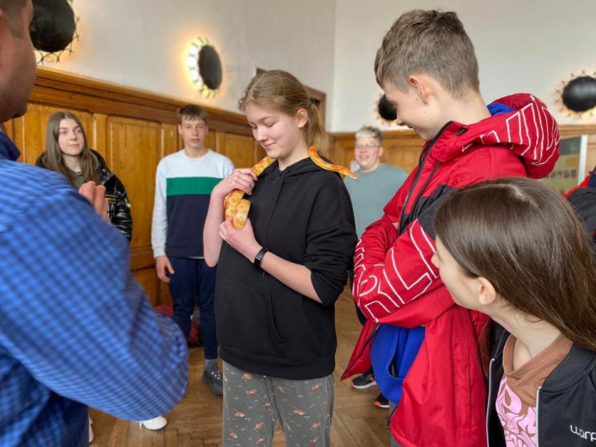 Wszystkie klasy Liceum Ogólnokształcącego w Wąbrzeźnie miały okazję uczestniczyć w żywej lekcji biologii dotyczącej płazów i gadów. W piątek odwiedzili nas również uczniowie klasy ósmej Szkoły Podstawowej nr 2 w Wąbrzeźnie, którzy zwiedzili wystawę posterową pt. “Płazy Polski”. Została ona przygotowana przez stowarzyszenie „Tilia”, zajmujące się ochroną przyrody. Zajęcia poprowadził Pan Szymon Krawczyk, który opowiedział dużo ciekawych rzeczy na temat omawianych zwierząt. Dodatkowo zaprezentował uczniom hodowane przez siebie węże. Młodzież mogła sprawdzić, czym się charakteryzuje struktura skóry węży, dotykając ich. Chętni wzięli także węże na ręce i zrobili sobie z nimi zdjęcia.