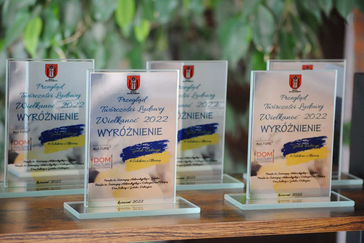 W tym roku hasłem Przeglądu Twórczości Ludowej „ Wielkanoc 2022” było „Solidarni z Ukrainą” ponieważ dochód ze sprzedaży prac zostanie przeznaczony na pomoc ofiarom wojny w Ukrainie.