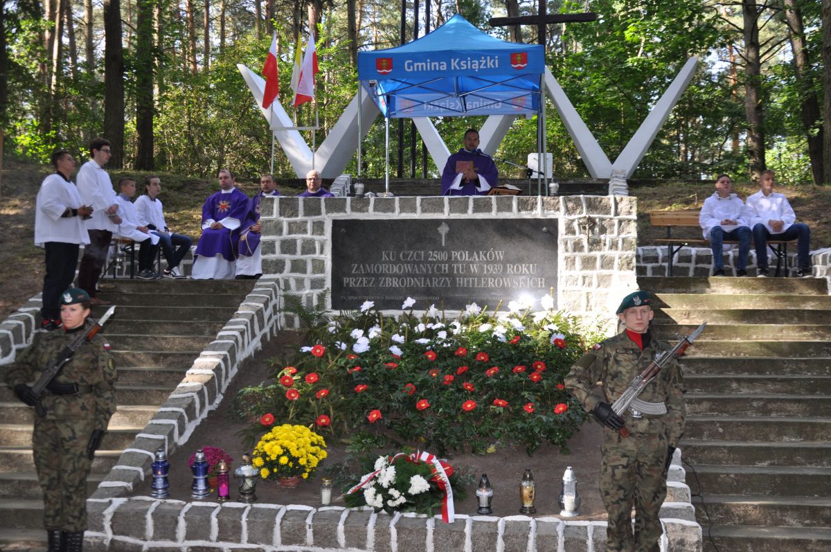 Po uroczystej Mszy Św. zostały złożone wieńce pod pomnikiem upamiętniającym ofiary hitlerowskich zbrodni.