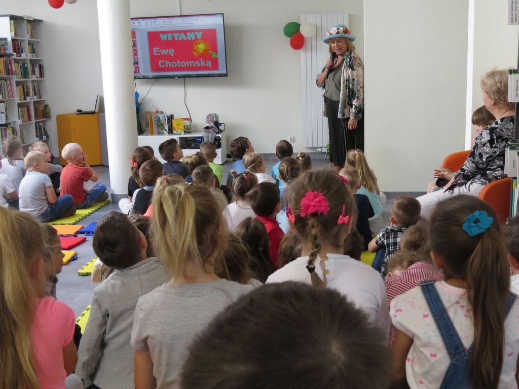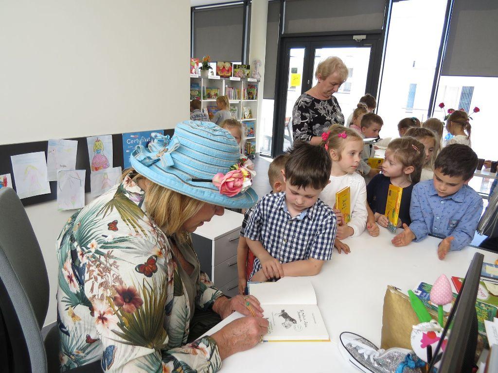 Dzieci zaopatrzone w książki Pani Ewy i biblioteczne zakładki opuszczały bibliotekę uśmiechnięte i - mamy nadzieję - bardzo zadowolone.