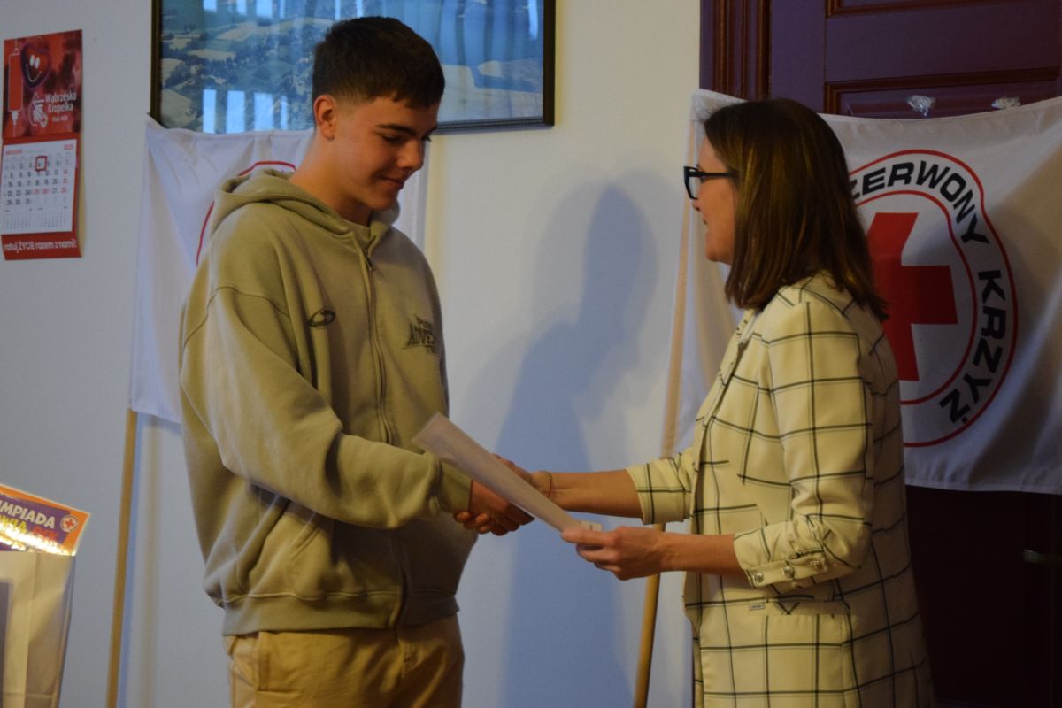 W dniu 08 grudnia 2025 roku w Starostwie Powiatowym w Wąbrzeźnie wręczono dyplomy i nagrody dla młodzieży, która brała udział w XXXIII edycji Ogólnopolskiej Olimpiady Zdrowia organizowanej przez największą i najstarszą humanitarną organizację międzynarodową w Polsce – Polski Czerwony Krzyż.