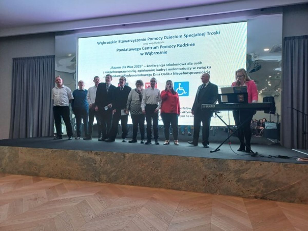 W nawiązaniu do Międzynarodowego Dnia Osób z Niepełnosprawnością dnia 10.12.2025 r. Wąbrzeskie Stowarzyszenie Pomocy Dzieciom Specjalnej Troski przy współudziale Powiatowego Centrum Pomocy Rodzinie w Wąbrzeźnie zorganizowało konferencję szkoleniową „Razem dla Was” dla osób z niepełnosprawnością, opiekunów, kadry i wolontariuszy. Spotkanie odbyło się w Sali bankietowej Restauracji RONDO.
