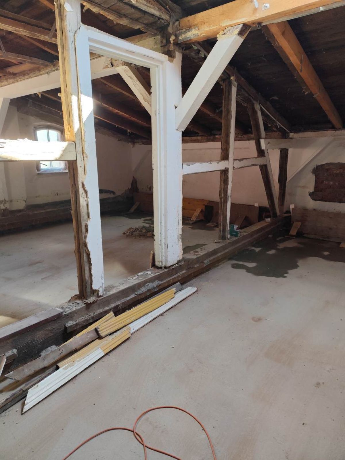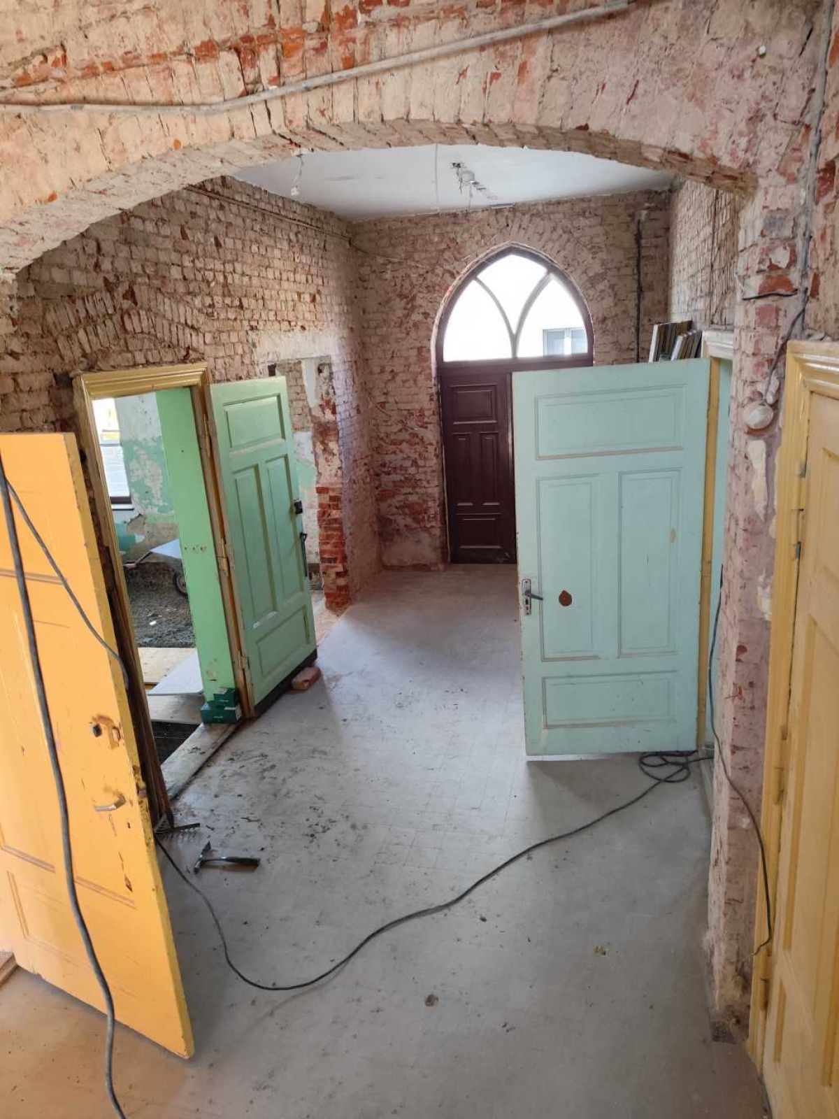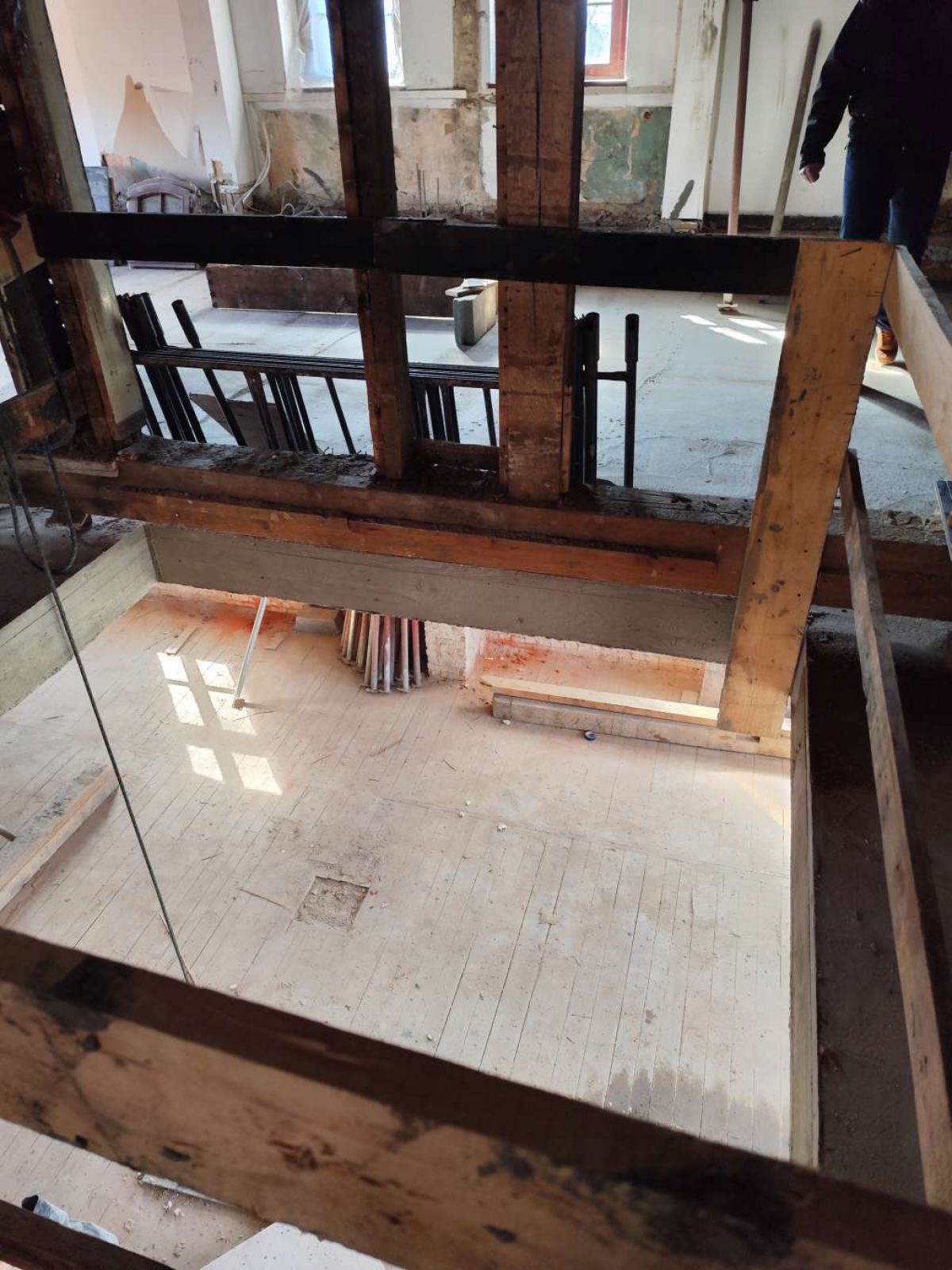 Obecnie trwają prace związane z m.in. wymianą instalacji elektrycznej, hydraulicznej i sanitarnej, prace związane z przebudową pomieszczeń wewnętrznych, prace przygotowawcze dotyczące wymiany dachu wraz z konstrukcją, montażu windy wewnętrznej. Został już wykonany nowy betonowy strop pomiędzy I a II piętrem.