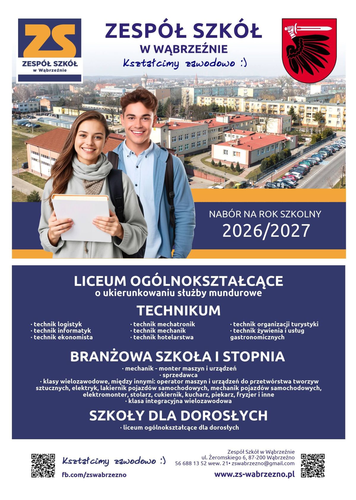 • Plakat przedstawiający ofertę edukacyjną Zespołu Szkół w Wąbrzeźnie na rok szkolny 2026/2027