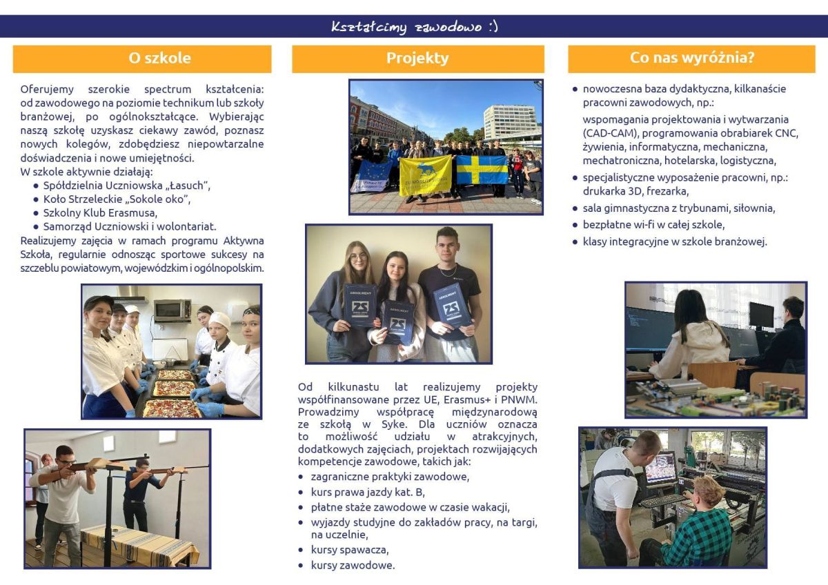 • aktywne życie szkolne: samorząd, wyjazdy, wydarzenia kulturalne, staże zawodowe,