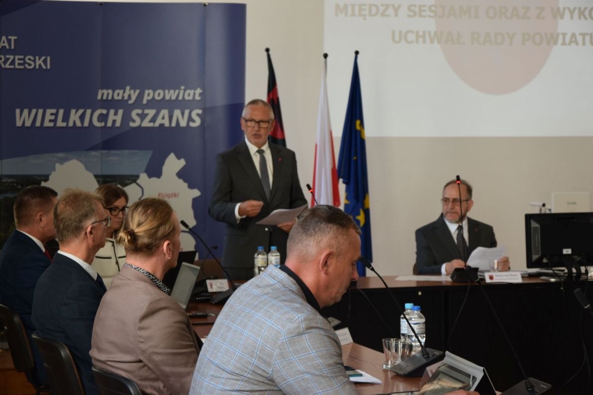 Po przyjęciu porządku obrad, Starosta Wąbrzeski przedstawił informację z prac Zarządu Powiatu w okresie między sesjami oraz z wykonania uchwał Rady Powiatu.
