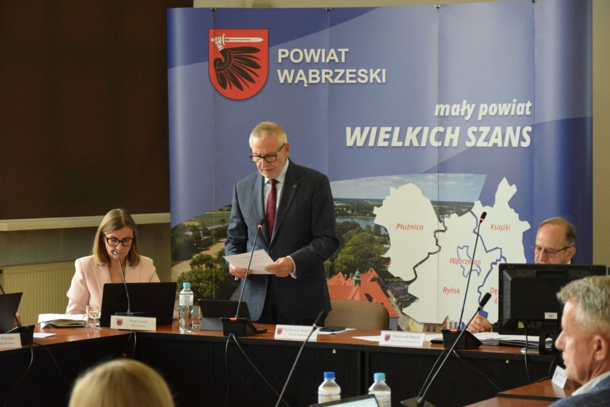 Po przyjęciu porządku obrad Starosta Wąbrzeski Krzysztof Maćkiewicz przedstawił informację z prac Zarządu Powiatu w okresie między sesjami oraz z wykonania uchwał Rady Powiatu.