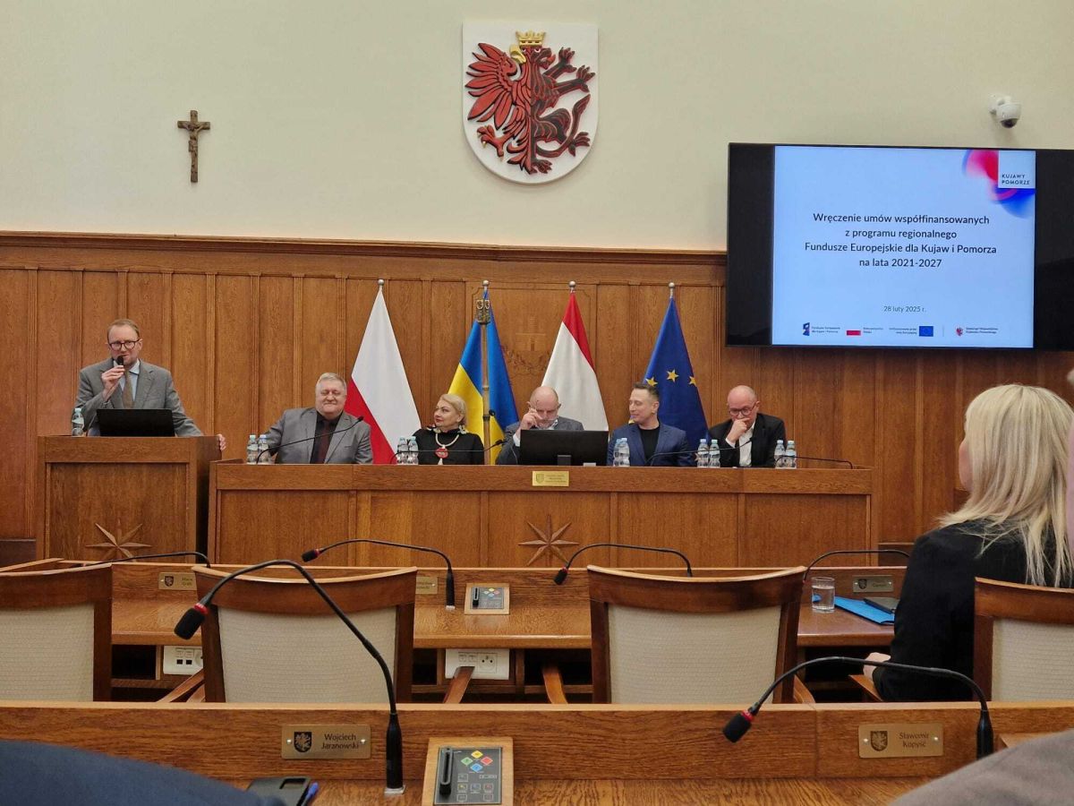 Dnia 28 lutego 2025r. Starosta Wąbrzeski brał udział w uroczystym przekazaniu umów o dofinansowanie dwóch projektów edukacyjnych dla szkół prowadzonych przez Powiat Wąbrzeski.