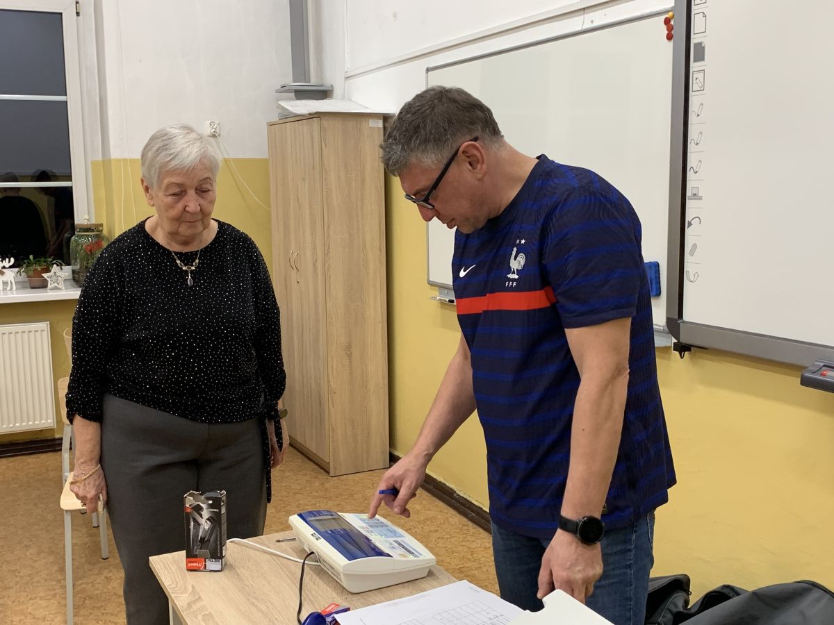 W dniu 12 grudnia 2025 r. odbyły się badania końcowe seniorów uczestniczących w „Programie zapobiegania upadkom dla seniorów w województwie kujawsko-pomorskim”. Badania obejmowały przeprowadzenie testu sprawności oraz pomiar masy ciała uczestników. Cały proces przebiegł sprawnie i bez zakłóceń.