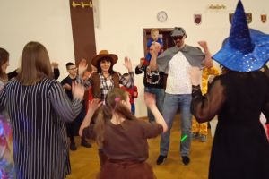 Została udekorowana kolorowymi balonami i zamieniła się w salę balową. Dzieci przyszły na bal przebrane w stroje ulubionych postaci z bajek. Gry i zabawy przygotowane dla Naszych gości przez pracowników Centrum poprowadził Pan Łukasz Krause. Zadbał on też o muzykę. Były kółeczka i tańce w parach. W czasie przerw można było zjeść coś słodkiego i zrobić sobie zdjęcia w strojach karnawałowych.