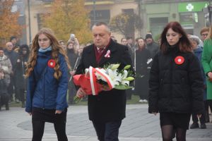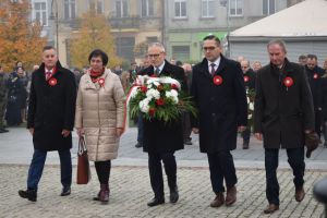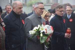 Popołudniu zebraliśmy się pod tablicą Towarzystwa Gimnastycznego Sokół, gdzie delegacje i mieszkańcy złożyli kwiaty i znicze oddając hołd walczącym o niepodległą Polskę mieszkańcom powiatu.
