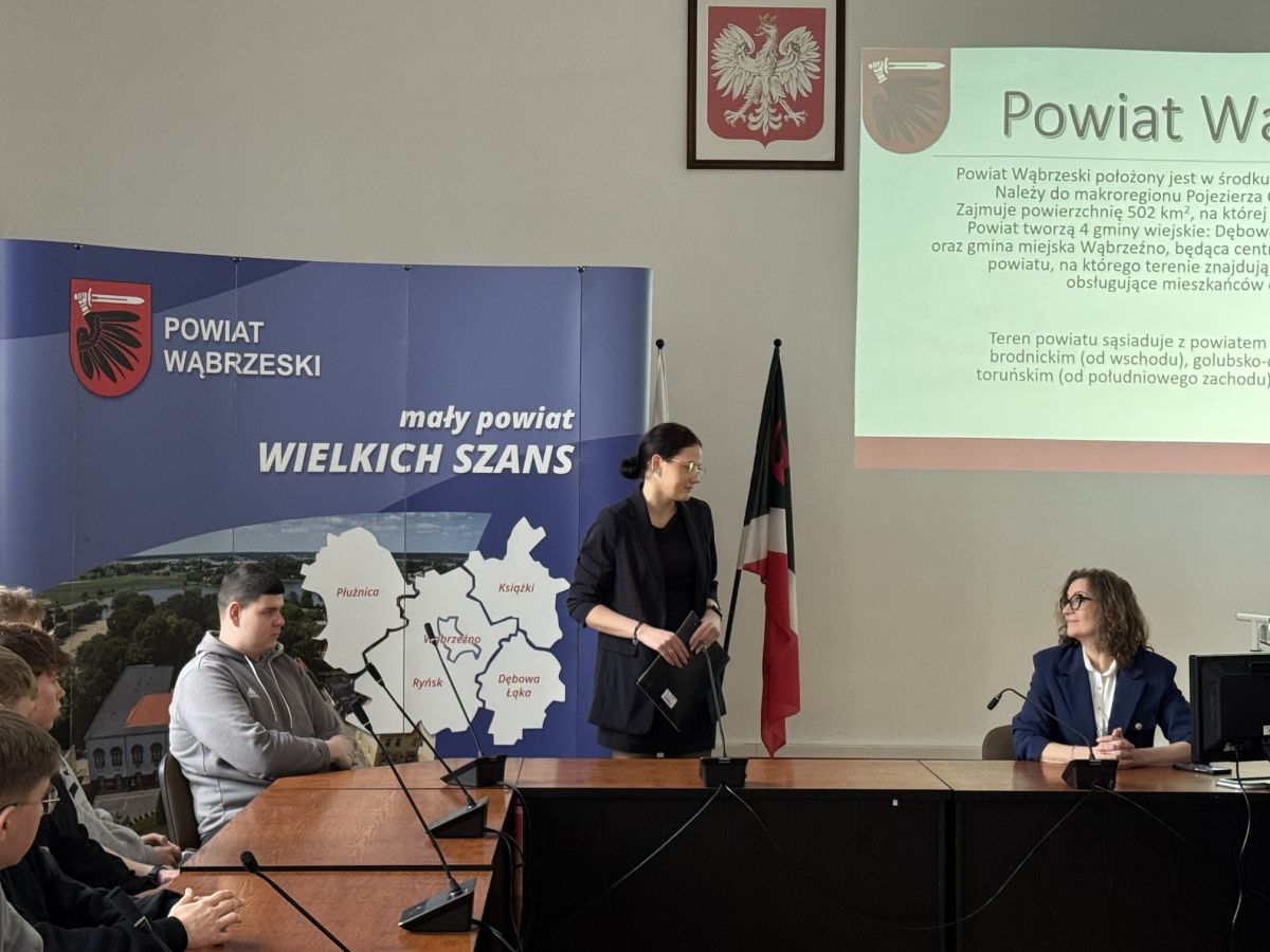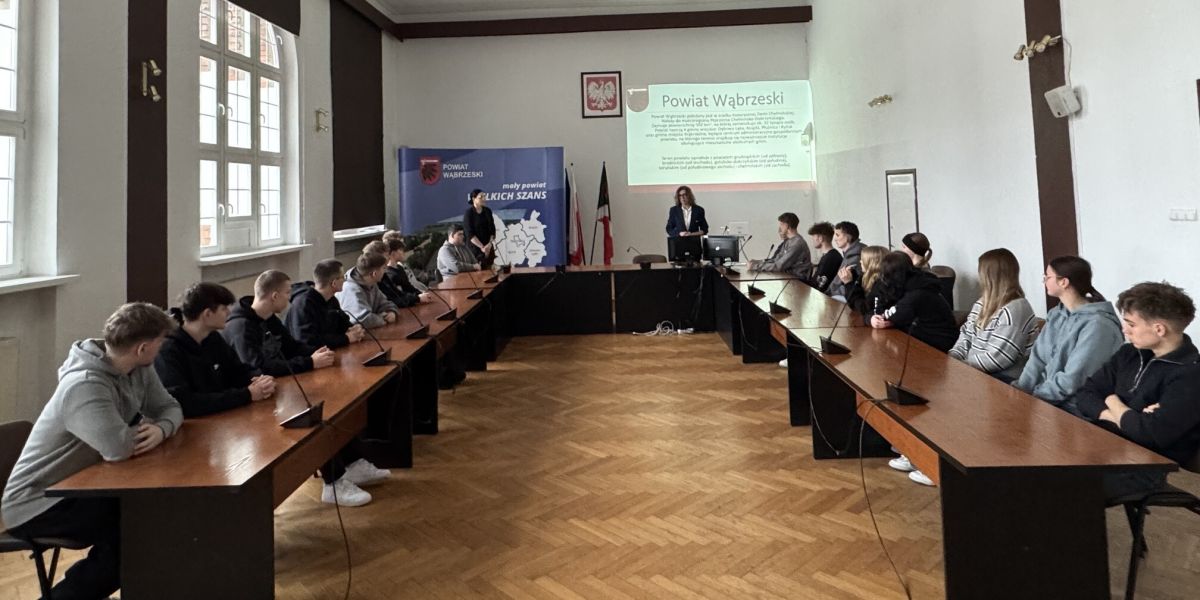 Dziś mieliśmy przyjemność gościć uczniów z Zespołu Szkół w Wąbrzeźnie w ramach kolejnej odsłony naszego edukacyjnego cyklu pn. „Lekcja w Starostwie”.