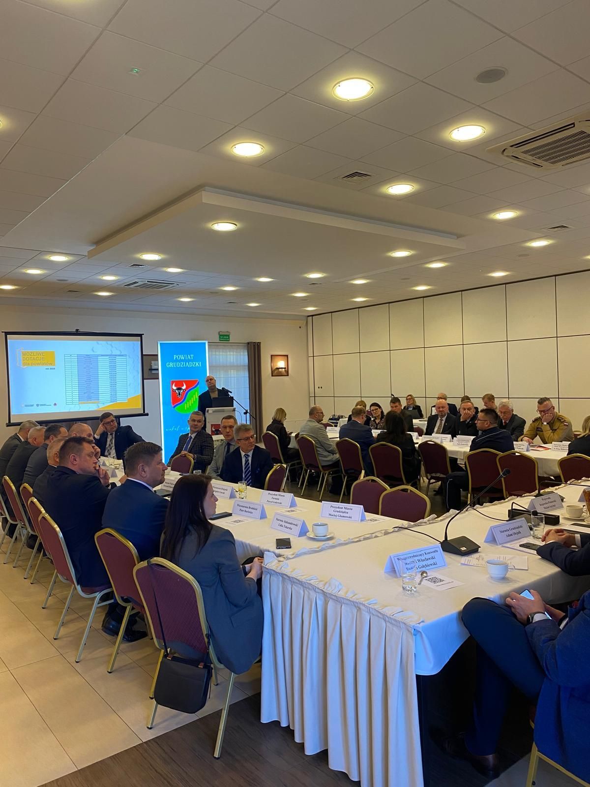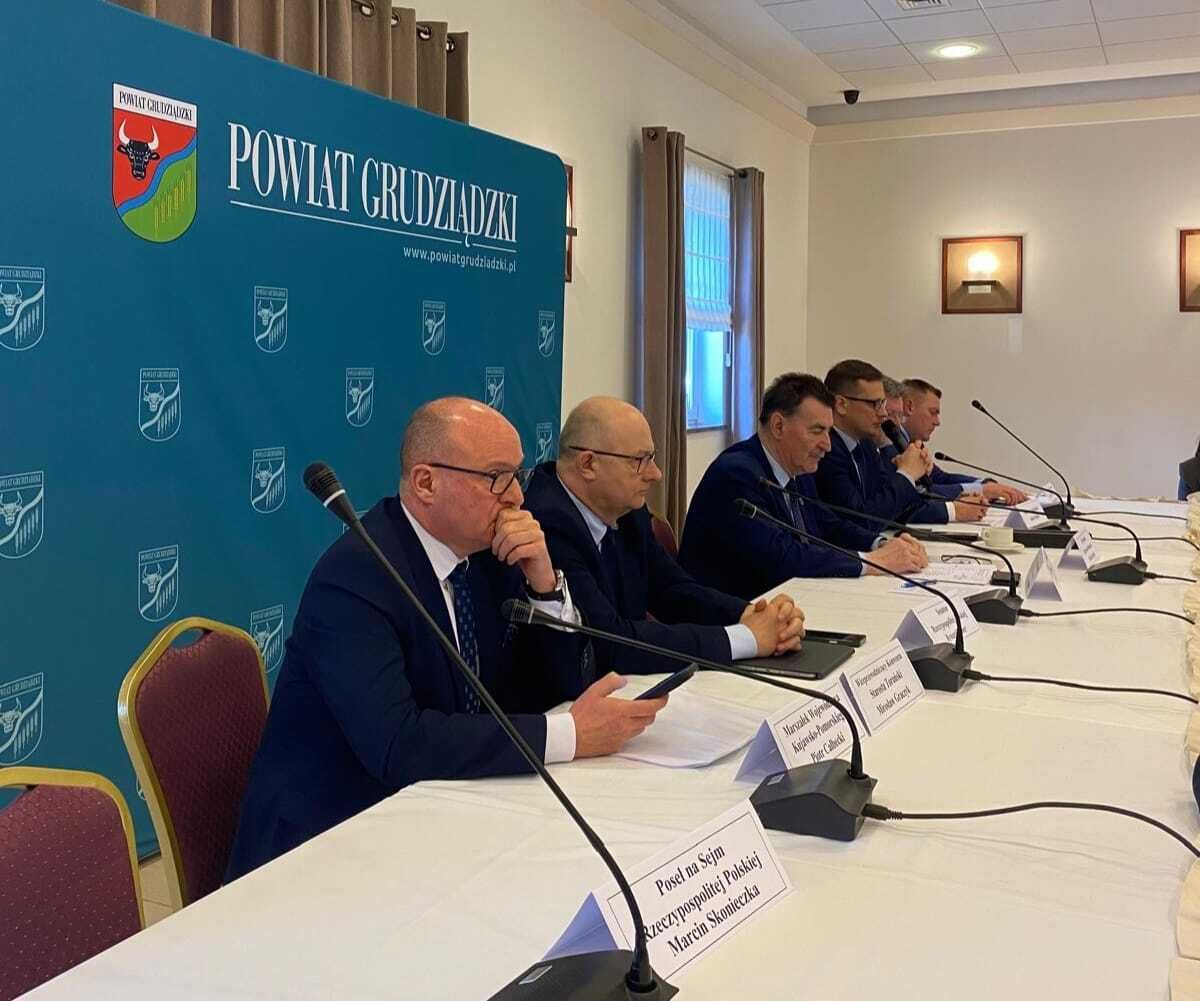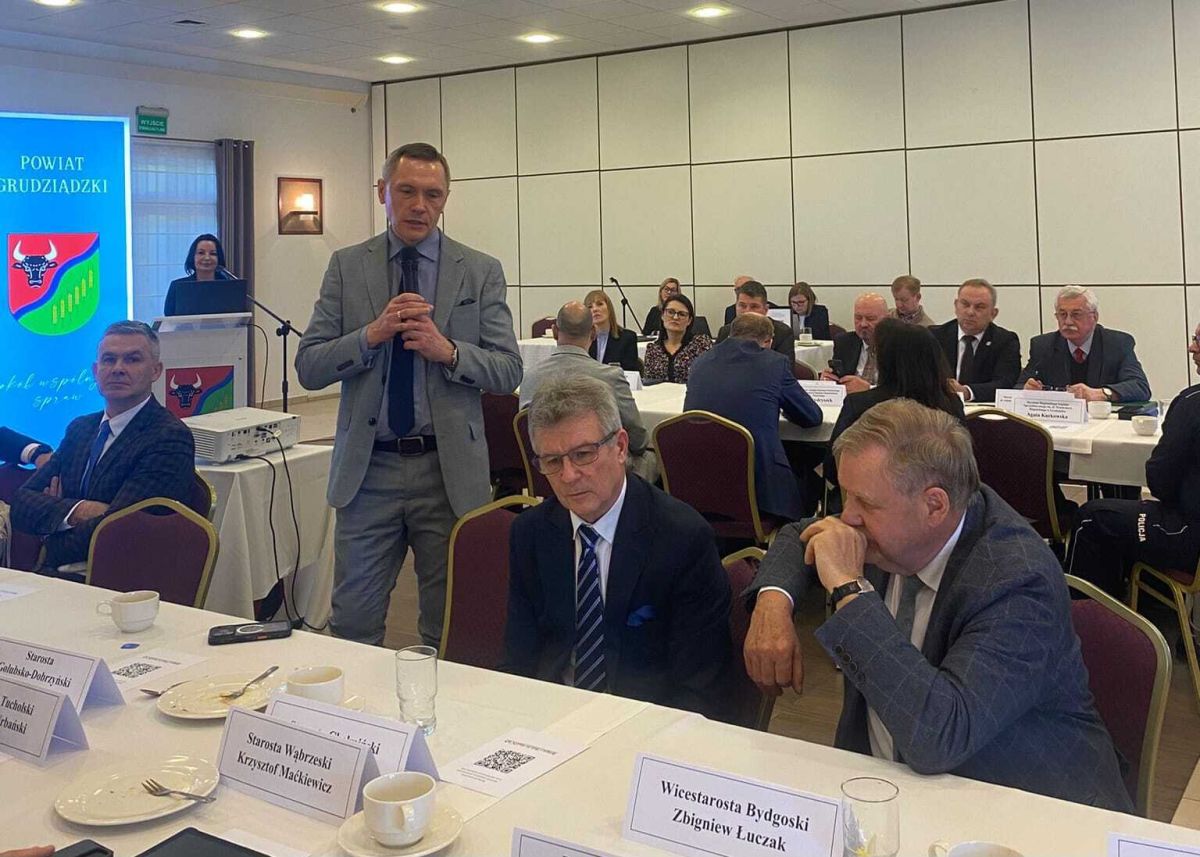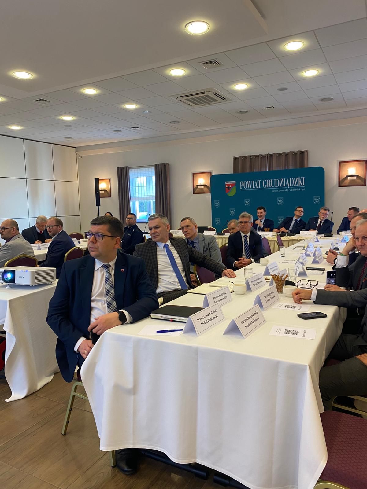W posiedzeniu uczestniczył Michał Sztybel Wojewoda Kujawsko-Pomorski oraz starostowie z powiatów województwa kujawsko-pomorskiego, w tym Krzysztof Maćkiewicz Starosta Wąbrzeski.