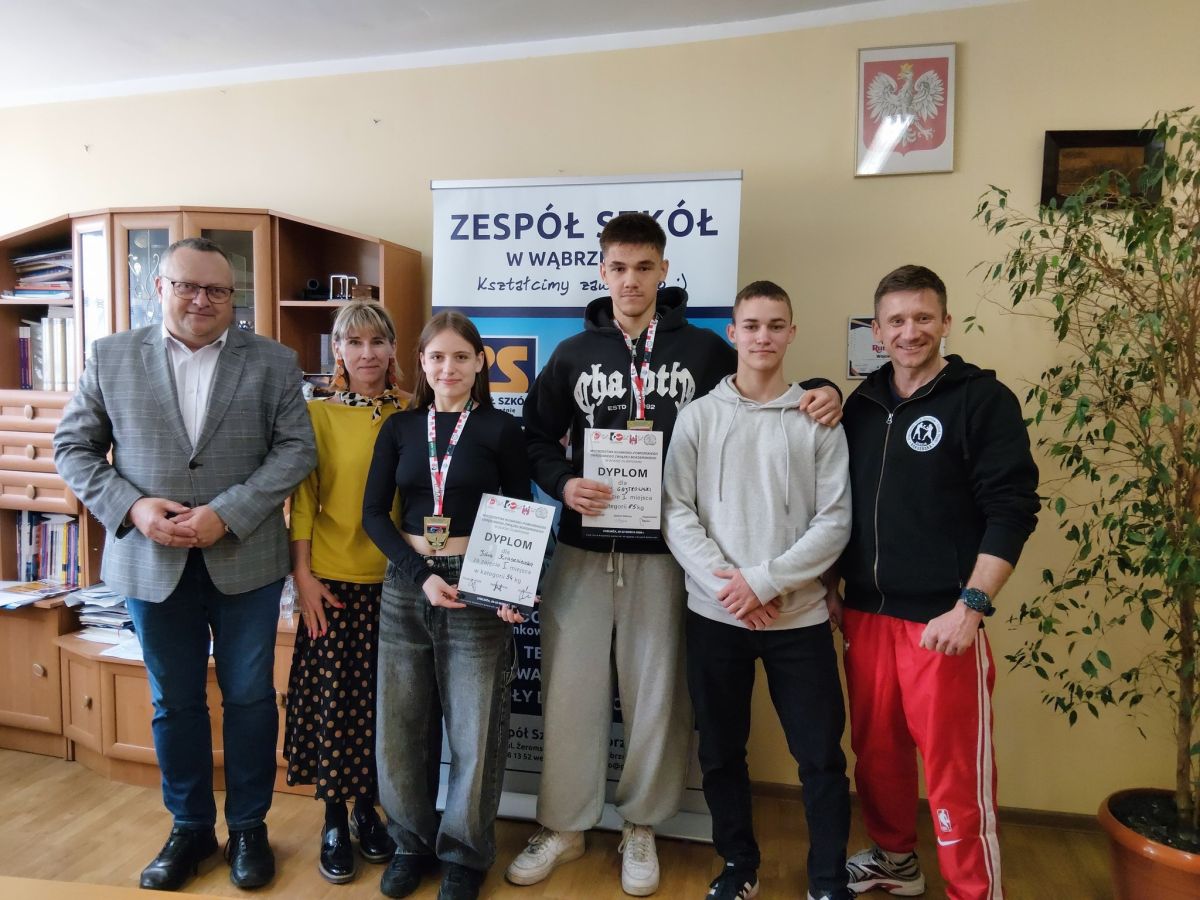 Na podium stanęli również uczniowie Zespołu Szkół w Wąbrzeźnie. Marcin Gajtkowski zdobył tytuł Mistrza Okręgu w kategorii do 85 kg, natomiast Julia Kraszniewska wywalczyła tytuł wicemistrzyni w kategorii 57 kg.