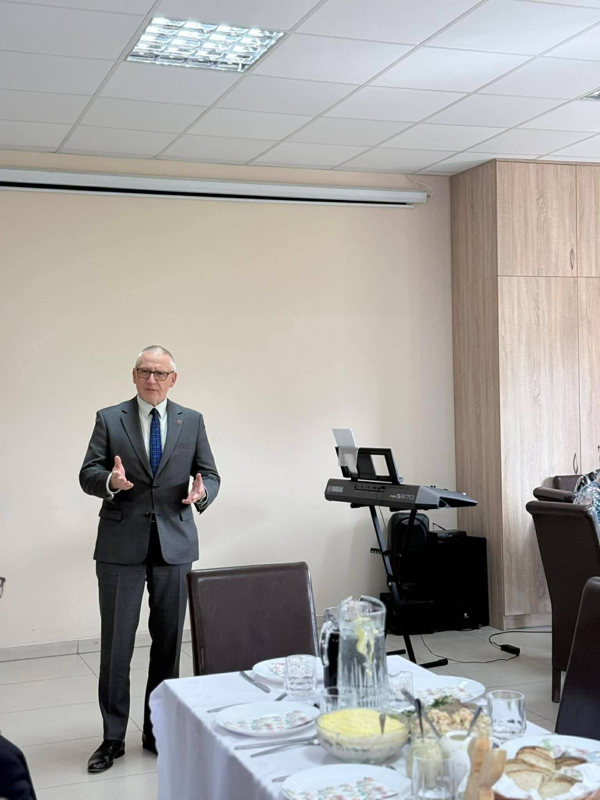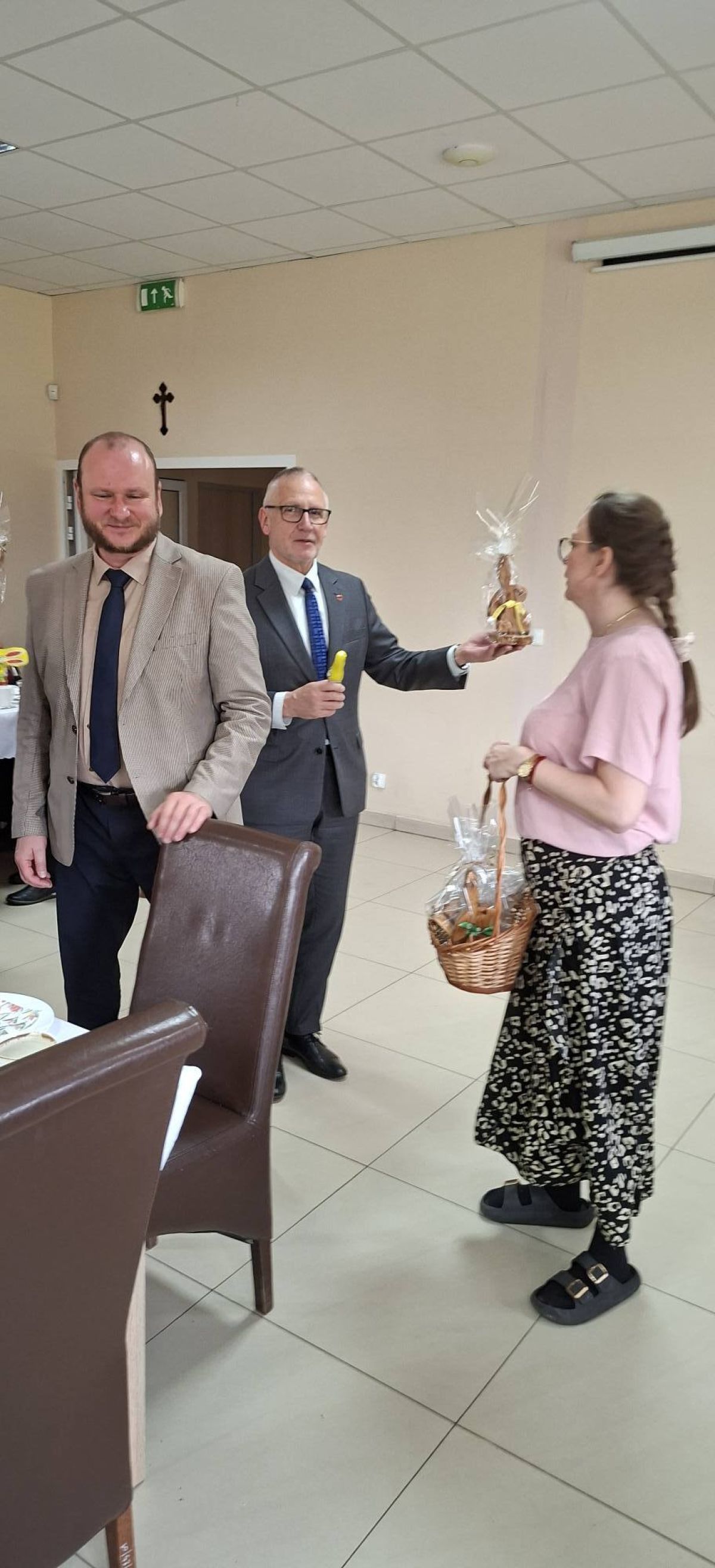 W spotkaniu wielkanocnym w ŚDS we Wroniu uczestniczył Starosta Wąbrzeski Krzysztof Maćkiewicz życząc uczestnikom oraz pracownikom placówki spokojnych i radosnych Świąt Wielkanocnych, przepełnionych nadzieją, wzajemną życzliwością oraz wiosennym optymizmem. W swoim wystąpieniu podziękował uczestnikom i pracownikom za codzienną pracę oraz zaangażowanie w tworzenie przyjaznego miejsca wsparcia i terapii.