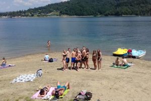 Czwarty dzień naszej wycieczki był dla nas dniem odpoczynku. Zwiedziliśmy okoliczne atrakcje takie jak źródełko w Zwierzyniu czy zapory wodne w Myczkowcach i Solinie. Później pojechaliśmy do Polańczyka-Zdroju, gdzie spędziliśmy czas relaksując się na plaży. Następnie chętni pojechali na basen, a reszta mogła wykorzystać czas wolny na zwiedzanie Leska - jednego z najważniejszych miast Bieszczad. Po powrocie do ośrodka czekał nas grill. Nie obyło się także bez tradycyjnej zielonej nocy.