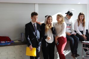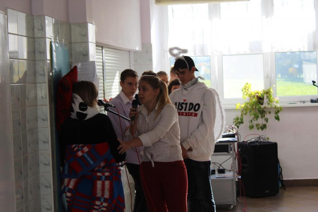 Samorząd Uczniowski przez ostatnie lata przyzwyczaił nas do oryginalnych przedstawień artystycznych, których premiera odbywa się w Dniu Edukacji Narodowej. W tym roku mieliśmy przyjemność obejrzeć program przygotowany przez debiutantów - uczniów klasy I LO, wspomaganych przez maturzystę, Jakuba Sankiewicza z kl. IV T oraz Bartka Grzębskiego z kl. II LO. Podczas krótkiego przedstawienia nie zabrakło elementów humorystycznych, jak i chwil wzruszeń. W imieniu całej społeczności uczniowskiej obdarowano wszystkich solenizantów symbolicznym kwiatkiem.