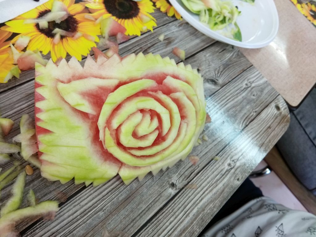 Szkolenie z carvingu na poziomie podstawowym to początek drogi na szlaku rzeźbienia w warzywach i owocach. Praktyczną stronę carvingu miały okazję poznać uczennice Technikum Żywienia i Usług Gastronomicznych Zespołu Szkół we Wroniu oraz Technikum Zespołu Szkół Zawodowych w Wąbrzeźnie. Na kursie, który odbył się 23 marca 2019 r. 25 – osobowa grupa adeptek sztuki kulinarnej szkoliła umiejętności w tym zakresie sposobu prawidłowego trzymania i używania noży do carvingu, wykonywania podstawowych rzeźb z rzodkiewek i jabłek i te bardziej skomplikowane: róże rzeźbione z kalarepy, melona i arbuza, łabędzie z jabłek, szyszki z marchewki oraz liście z cukinii. Ważnym praktycznym elementem kursu była możliwość wykonania indywidualnej rzeźby, co pozwoliło kursantkom na wykazanie się nie tylko umiejętnościami, ale i wyobraźnią.