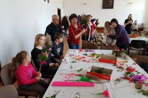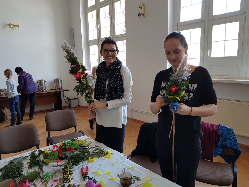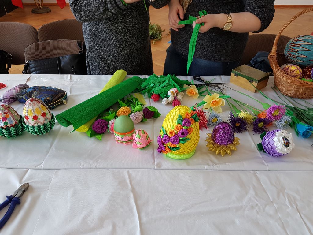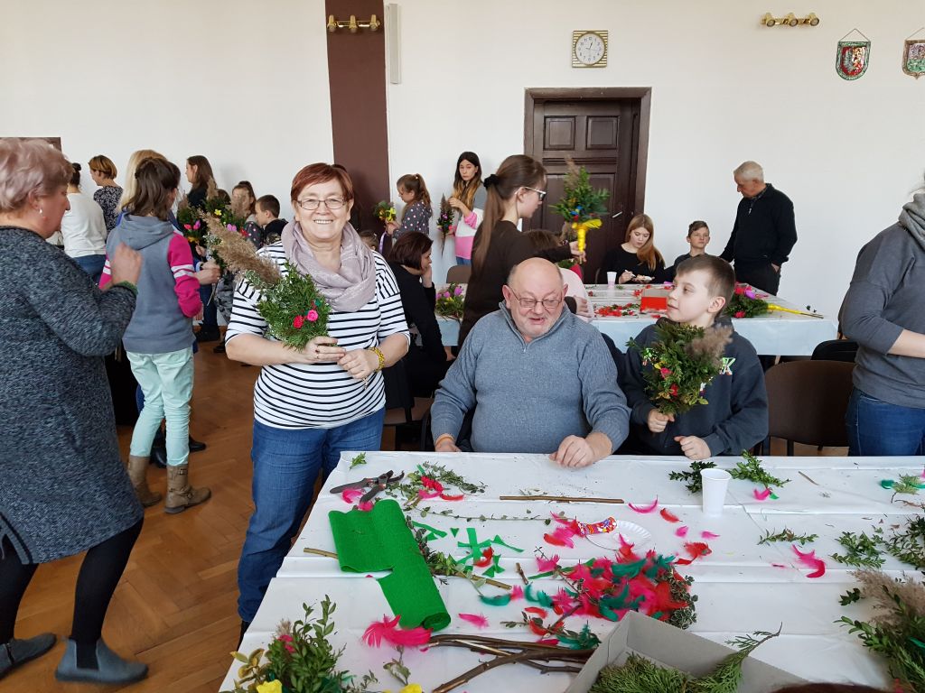 Podczas warsztatów można było podziwiać ozdoby wielkanocne, wykonane przez Panie z Klubu Rękodzieła Artystycznego Węzełek oraz wykonać własną palmę pod kierunkiem Pań z Książek i Czystochlebia.