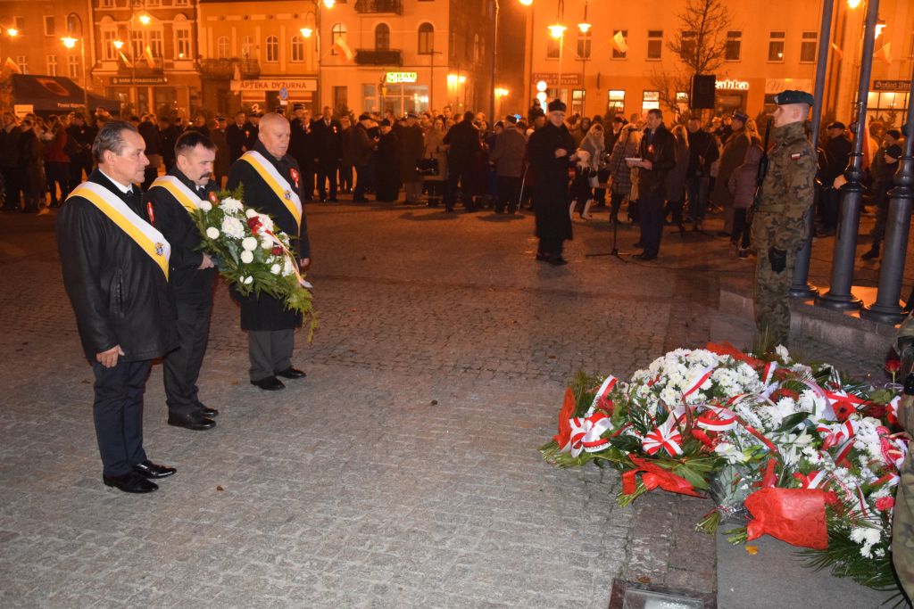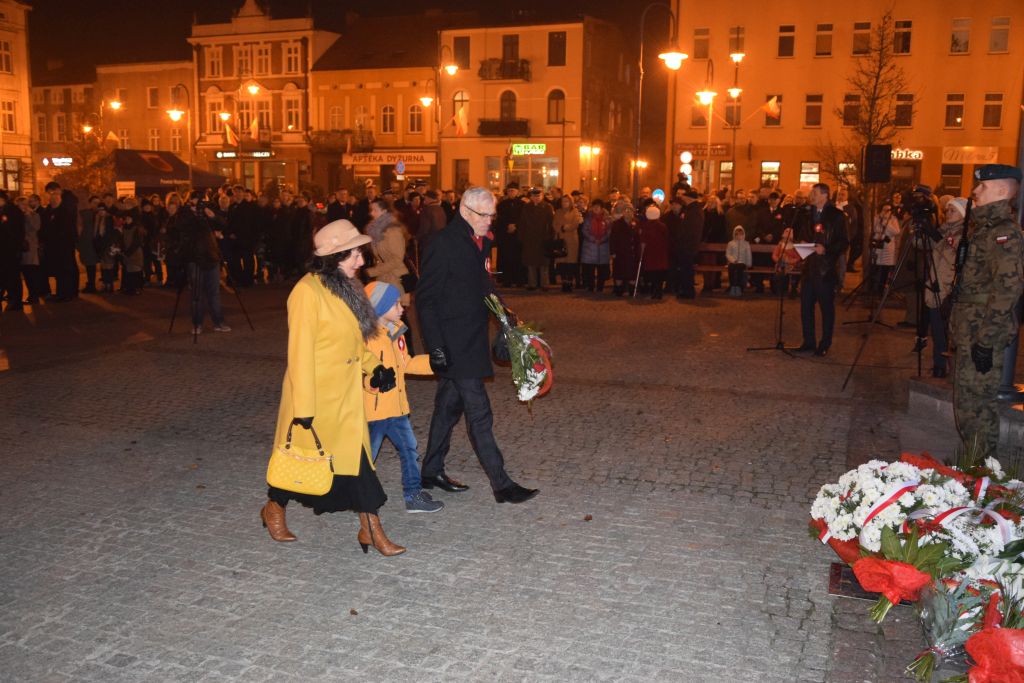 Uroczystość rozpoczęła się od złożenia kwiatów pod pomnikiem Towarzystwa Gimnastycznego „Sokół”. Następnie w Kościele p.w. św. Apostołów Szymona i Judy Tadeusza w Wąbrzeźnie odbył się koncert pieśni patriotycznych w wykonaniu chóru Cantate Domino pod przewodnictwem Pana Wojciecha Góralskiego. Po zasłużonych owacjach nadszedł czas na montaż słowno – muzyczny przygotowany przez uczniów Zespołu Szkół Ogólnokształcących w Wąbrzeźnie, który również spodobał się licznie zgromadzonej publiczności. Kolejną częścią programu była Msza Święta za Ojczyznę, którą poprowadził Ks. Kustosz Jan Kalinowski. Kazanie wygłosił Ks. prof. Józef Dębiński, który swoim wystąpieniem uświetnił obchody Narodowego Święta Niepodległości. Po mszy uczestnicy uroczystości przemaszerowali w asyście kompanii honorowej 8 Batalionu Walki Radioelektronicznej im. gen. bryg. Zygmunta Podhorskiego na czele na plac Jana Pawła II. Po odegraniu hymnu przez orkiestrę Wąbrzeskiego Domu Kultury i przywitaniu gości głos zabrali Starosta Wąbrzeski Krzysztof Maćkiewicz, Wicewojewoda Kujawsko – Pomorski Józef Ramlau i Przewodniczący Sejmiku Województwa Kujawsko – Pomorskiego Ryszard Bober. Następnie odbył się Apel Poległych i salwa honorowa, po której złożono wieńce i kwiaty pod pomnikiem na Placu Jana Pawła II. Licznie zgromadzeni mieszkańcy Powiatu Wąbrzeskiego mogli na koniec uraczyć się przygotowaną przez uczniów i nauczycieli Zespołu Szkół we Wroniu czerniną.