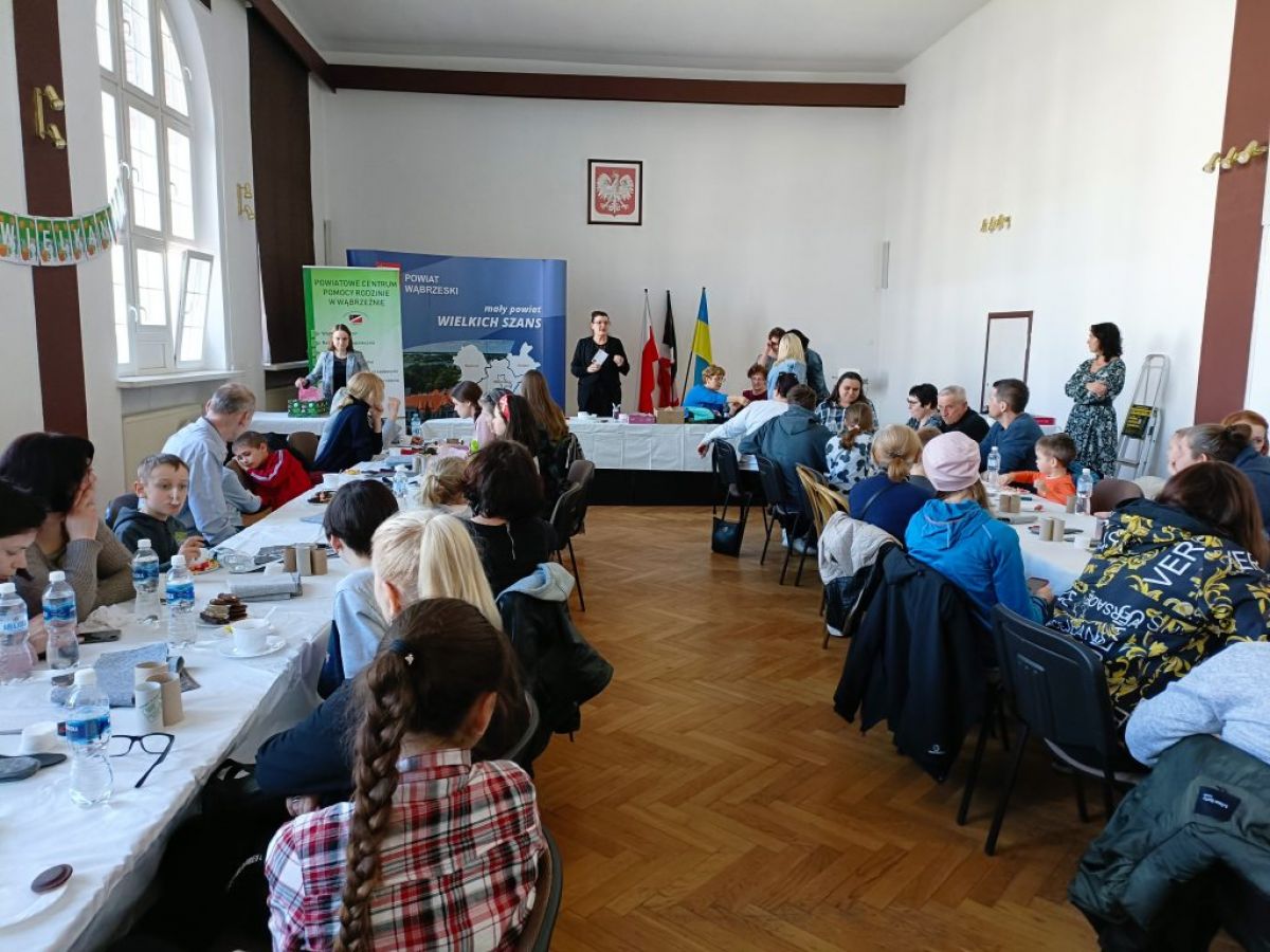 Dnia 12 kwietnia 2022 r., w Starostwie Powiatowym w Wąbrzeźnie, Powiatowe Centrum Pomocy Rodzinie gościło rodziny zastępcze wraz z wychowankami oraz gości z Ukrainy, w ramach Warsztatów Świątecznych organizowanych przy pomocy Koła Gospodyń Wiejskich w Czystochlebiu.