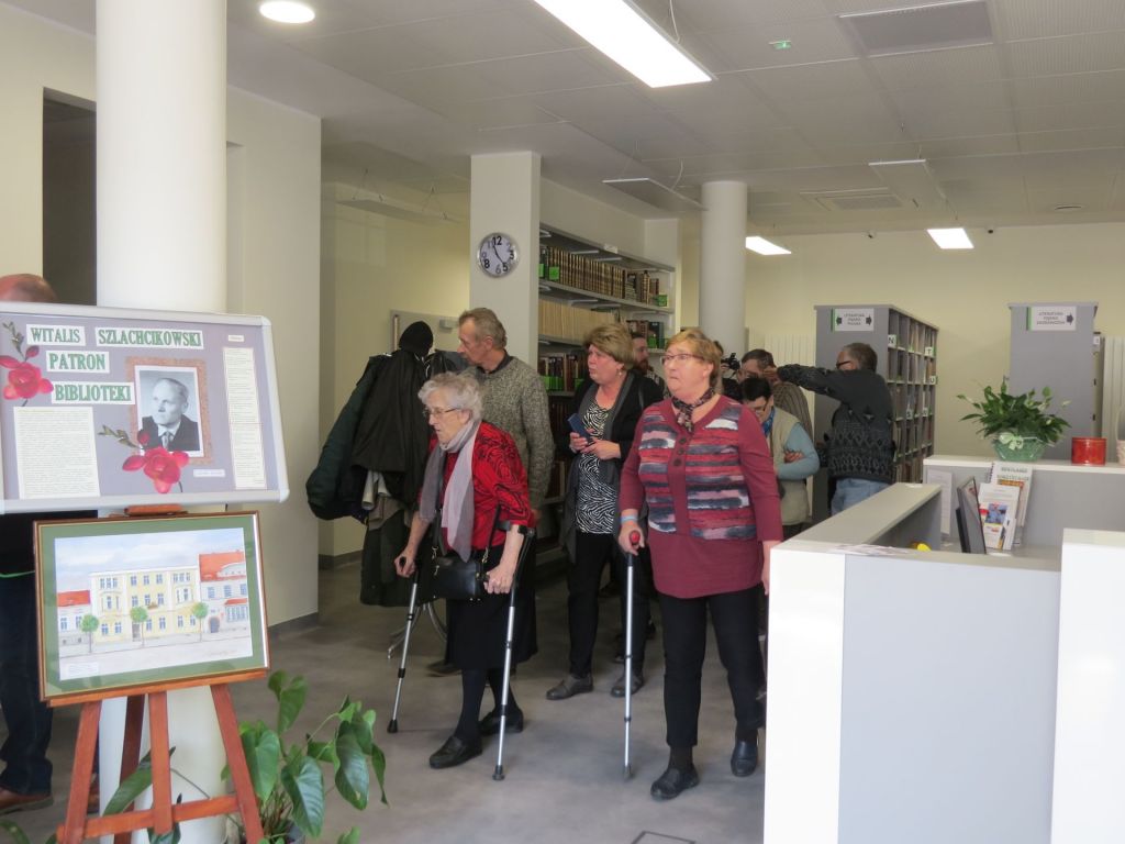 Czwartkowe (4.04.2019) przedpołudnie spędzili w wąbrzeskiej bibliotece podopieczni Środowiskowego Domu Samopomocy we Wroniu. Prawie pięćdziesięcioosobowa grupa osób starszych i niepełnosprawnych, która na co dzień bierze udział w różnorakich zajęciach terapeutyczno-rehabilitacyjnych w placówce we Wroniu, dziś miała okazję poznać naszą bibliotekę, zapoznać się z jej historią i zbiorami. Dyrektor Aleksandra Kurek przybliżyła gościom sylwetkę patrona biblioteki, Witalisa Szlachcikowskiego. Ten wybitny regionalista, choć nie pochodził z ziemi wąbrzeskiej stał się jej wielkim piewcą i znawcą jej przeszłości. Pisane przez Szlachcikowskiego rękopisy dotyczące m.in. takich aspektów historii miasta i powiatu, jak: szpitalnictwo, oświata, baśnie i legendy, miejsca pamięci stały się zaczynkiem zbiorów regionalnych naszej biblioteki.