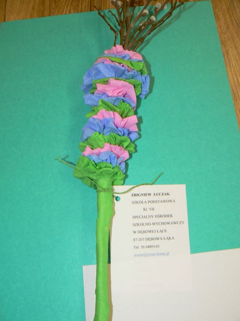 W naszym Ośrodku pamiętamy o tym, że są ludzie którzy potrzebują naszej pomocy. Dlatego zawsze chętnie bierzemy udział w akcjach, których celem jest pomoc drugiemu człowiekowi. W związku z tym przyjęliśmy zaproszenie do udziału w XIV edycji wojewódzkiego konkursu plastycznego dla szkół podstawowych i klas gimnazjalnych „Najpiękniejsza palma wielkanocna” organizowanego przez Szkołę Podstawową nr 4 z Oddziałami Dwujęzycznymi w Toruniu.