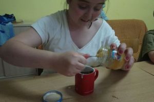 Tym razem na tapecie była maseczka antyoksydacyjna. Marysia dodała kakao, Kasia zmielone płatki owsiane, Weronika jogurt naturalny, a Natalia miód. Wszystko razem wymieszałyśmy i relaksowałyśmy się z maseczką na twarzy i pięknym zapachem czekolady! Niektórzy nawet wytykali język, aby spróbować, gdyż zapach był baaaaaardzo zachęcający i zgodnie razem stwierdziłyśmy, że to była najsłodsza z naszych maseczek. :)