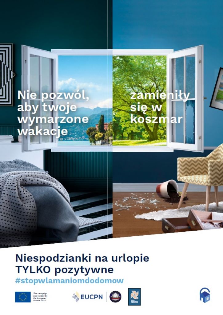 Rozpoczyna się czas wakacyjnych urlopów. Warto więc pomyśleć i zrobić wszystko, co jest niezbędne, aby zabezpieczyć się przed przykrą niespodzianką, jaka może nas spotkać po powrocie z upragnionego wypoczynku. Niespodzianką, którą może być włamanie. Właśnie dlatego, 19 czerwca obchodziliśmy po raz pierwszy Europejski Dzień Przeciwdziałania Włamaniom do Domów. Z okazji tego wydarzenia Europejska Sieć Zapobiegania Przestępczości (EUCPN) wraz z krajami UE rozpoczyna kampanię „Stop włamaniom do domów”.