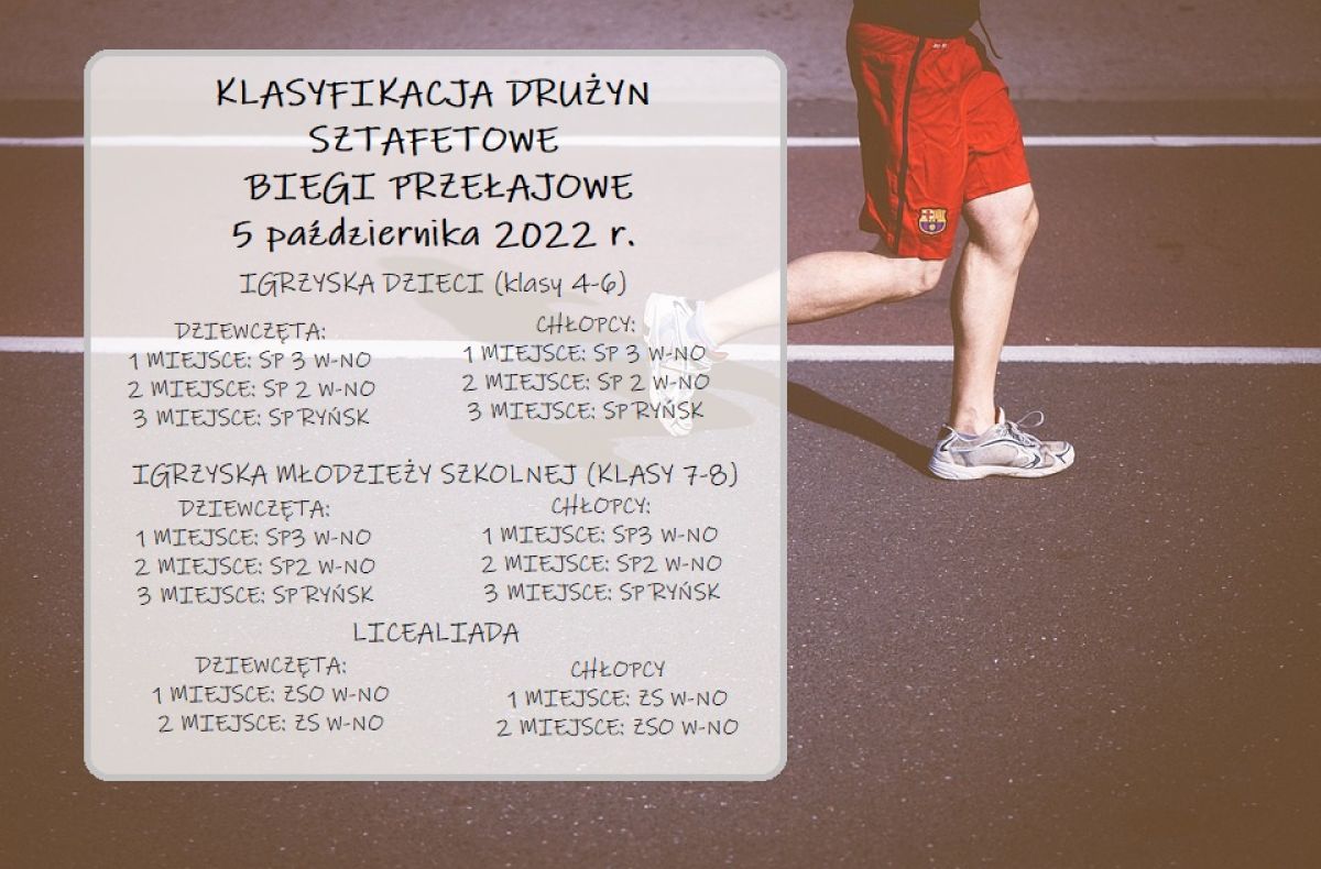 W tegorocznej jesiennej edycji sztafetowych biegów wzięły udział reprezentacje Szkoły Podstawowej nr 2 i 3 w Wąbrzeźnie, Szkoły Podstawowej w Ryńsku, a także drużyny z Zespołu Szkół Ogólnokształcących i Zespołu Szkół w Wąbrzeźnie.