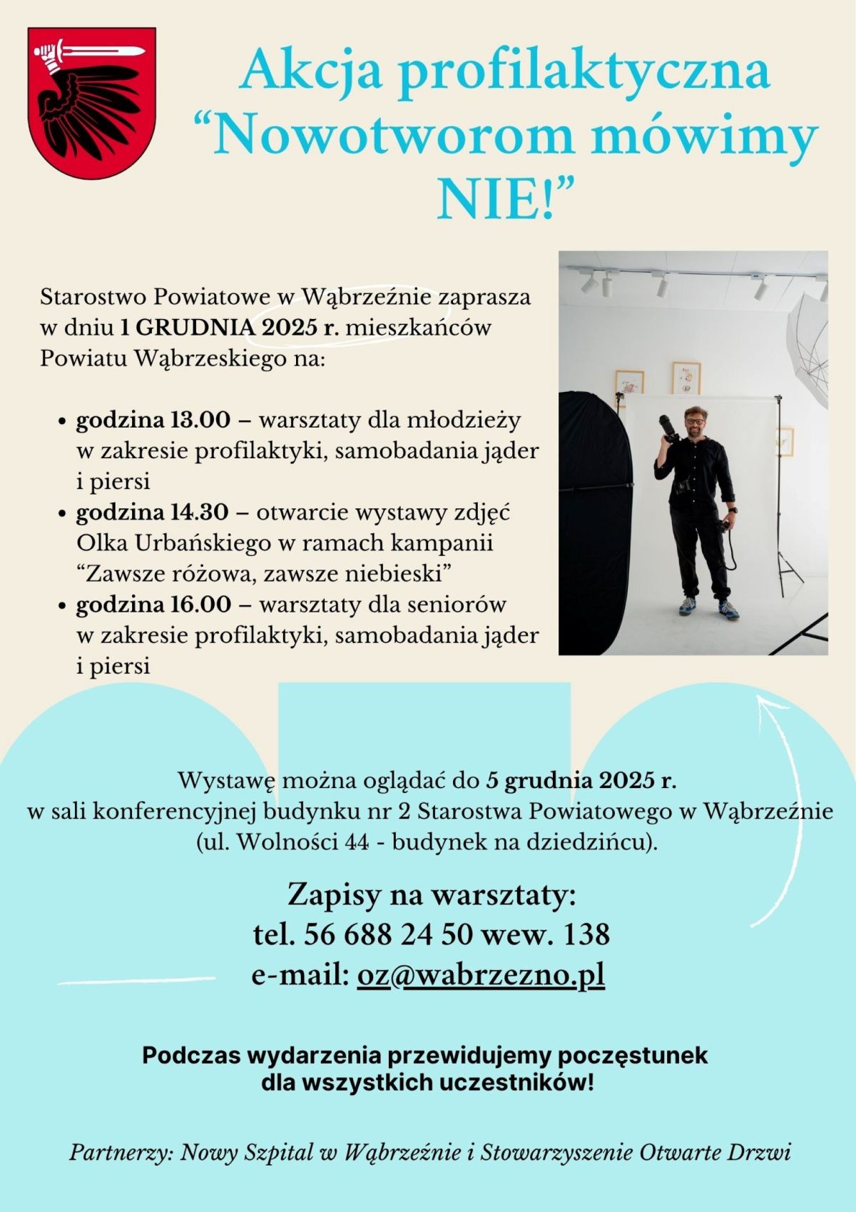 - 1 grudnia, godzina 16.00 – warsztaty dla seniorów w zakresie profilaktyki, samobadania jąder i piersi.