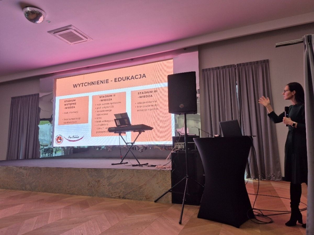 W ramach spotkania odbyły się dwa panele tematyczne: szkolenie – „Zespół stresu opiekuna” prowadzony przez Panią Aleksandrę Lewandowską liderkę Fundacji Pro Omnis oraz prezentacja projektu „Akcja Akceptacja”, który przedstawiła Pani Marta Cisło.