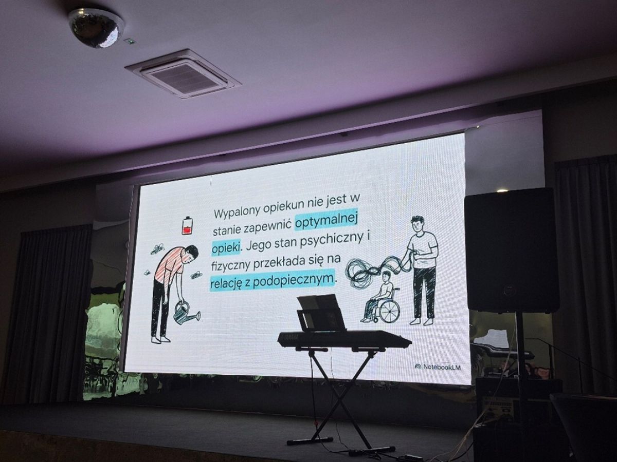 Moduł dotyczący zespołu stresu opiekuna koncentrował się na rozpoznawaniu objawów przeciążenia emocjonalnego u opiekunów oraz na rozwijaniu umiejętności radzenia sobie ze stresem. Uczestnicy poznali różnice między stresem krótkotrwałym a wypaleniem opiekuńczym, poznali techniki mikroodpoczynku oraz otrzymali mapę dostępnych form wsparcia psychicznego i środowiskowego.