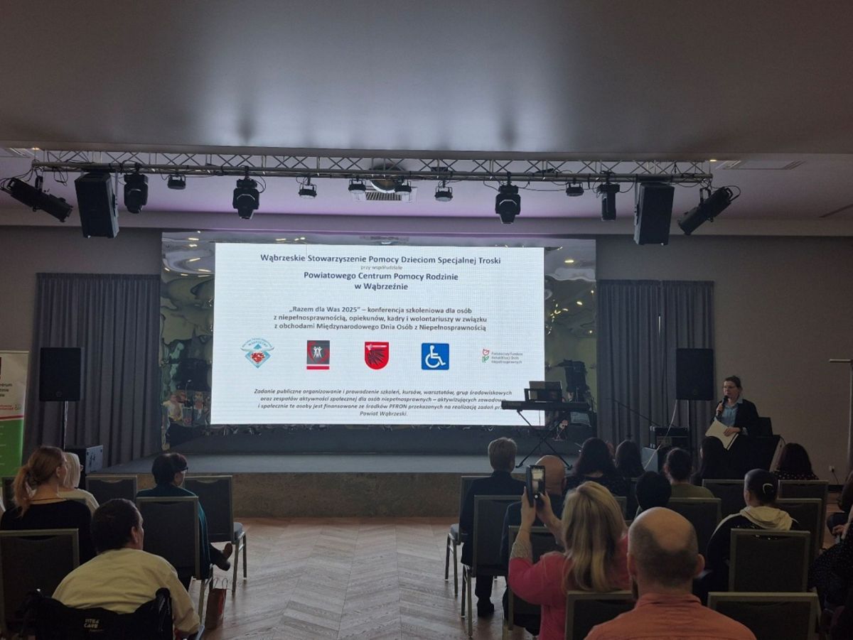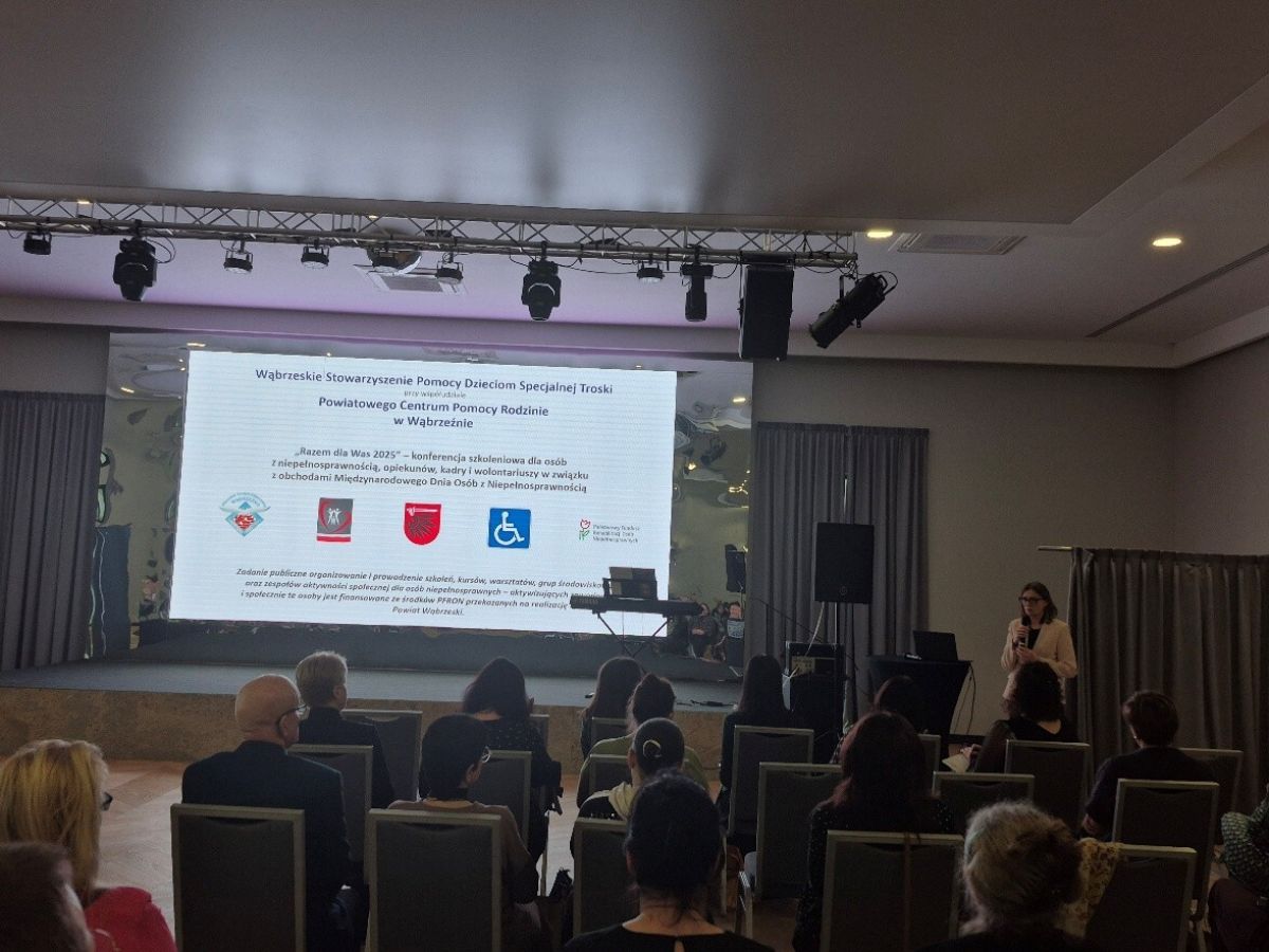 W nawiązaniu do Międzynarodowego Dnia Osób z Niepełnosprawnością dnia 10.12.2025 r. Wąbrzeskie Stowarzyszenie Pomocy Dzieciom Specjalnej Troski przy współudziale Powiatowego Centrum Pomocy Rodzinie w Wąbrzeźnie zorganizowało konferencję szkoleniową „Razem dla Was” dla osób z niepełnosprawnością, opiekunów, kadry i wolontariuszy. Spotkanie odbyło się w Sali bankietowej Restauracji RONDO.