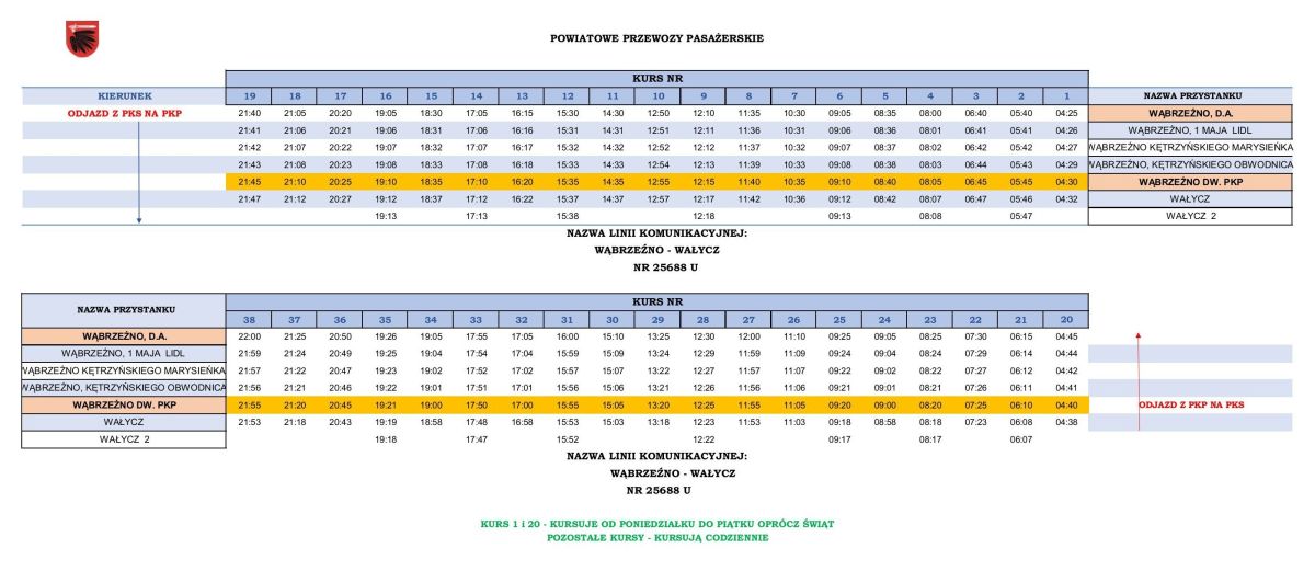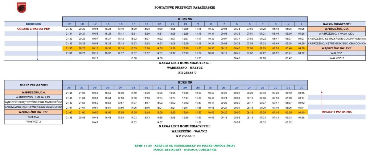 Wąbrzeźno - Wałycz (z PKS na dworzec PKP i z powrotem)