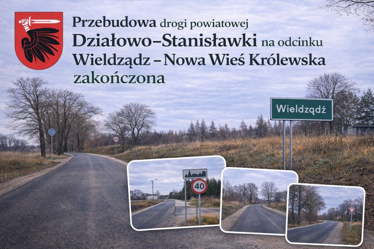 Przebudowa drogi powiatowej Działowo–Stanisławki na odcinku Wieldządz - Nowa Wieś Królewska zakończona !