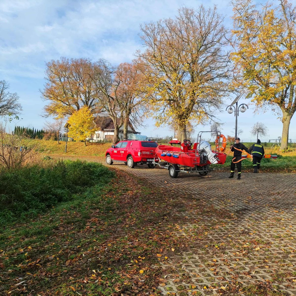 W dniu 4 listopada br. w godzinach porannych nad jez. Wieldządzkim spotkały się służby Komendy Powiatowej PSP w Wąbrzeźnie, przedstawiciele Wód Polskich, Inspektor ds. zk, oc i obronności (PCZK Wąbrzeźno), Wójt Gminy Płużnica, policja oraz przedstawiciel PZW Toruń. Sprawdzono jak wygląda linia brzegowa jeziora za dnia. Strażacy opłynęli cały akwen i stwierdzili punktowe nagromadzenie się substancji w całej linii brzegowej (trzcinowisku), najwięcej od strony wschodniej (pas długości około 200 metrów).