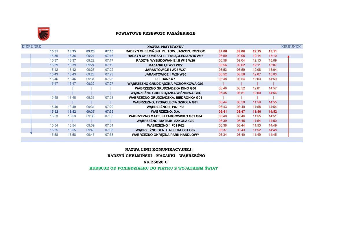Przypominamy ,że linia komunikacyjna nr 25628 U relacji Radzyń Chełmiński – Mazanki – Wąbrzeźno to wspólna inicjatywa ww. samorządów, która pozwoliła skomunikować miasta Wąbrzeźno oraz Radzyń Chełmiński.