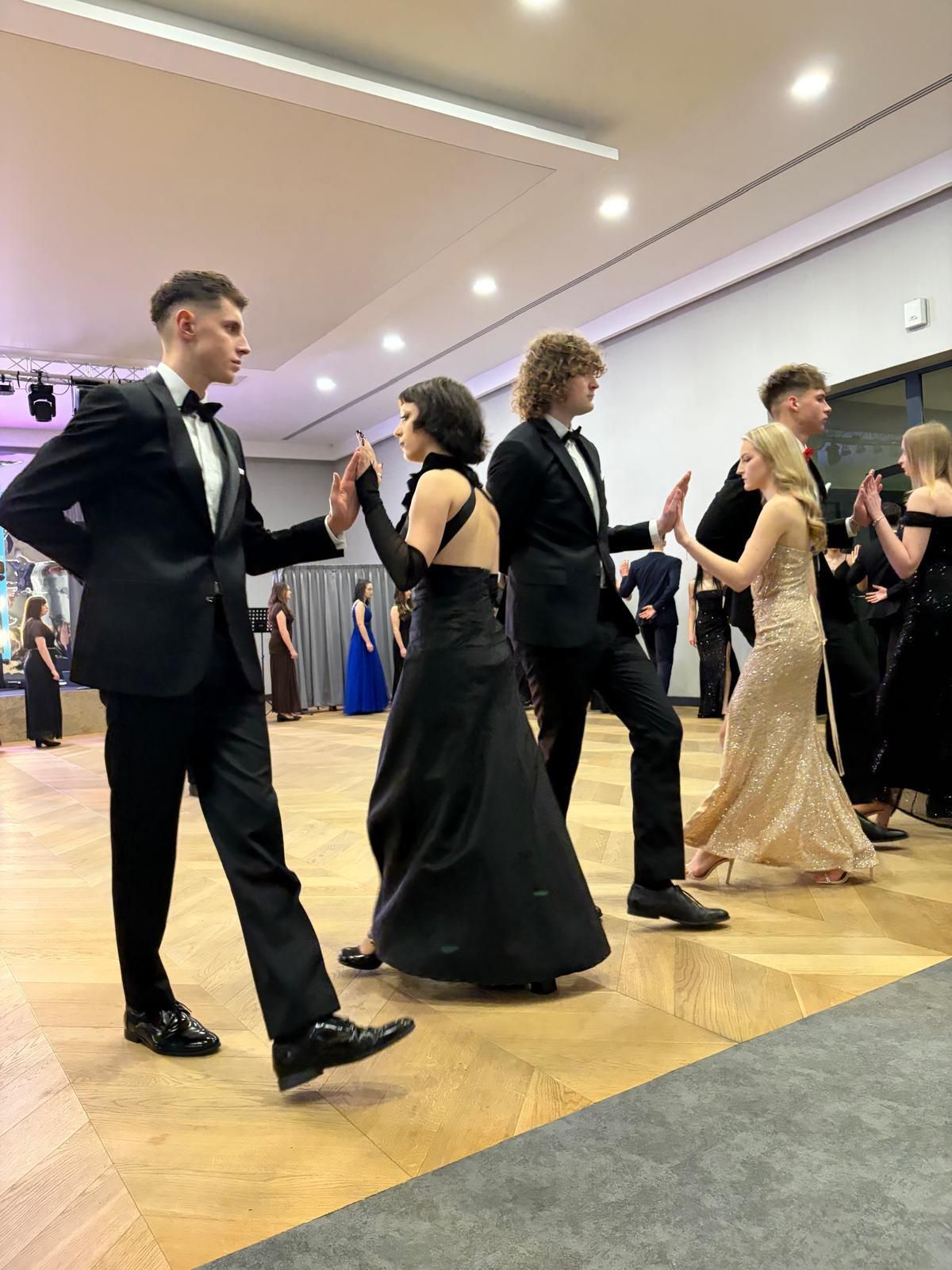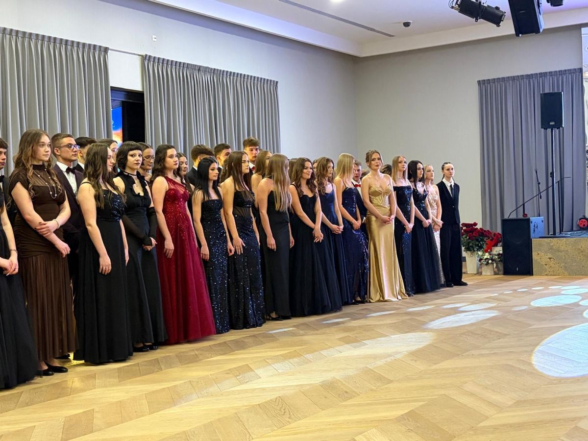 Studniówka w Zespole Szkół Ogólnokształcących w Wąbrzeźnie była prawdziwym świętem młodości, radości i wzruszeń. Uczniowie zachwycili pięknym, dostojnym polonezem, który wprowadził wszystkich w wyjątkowy klimat tego wieczoru.